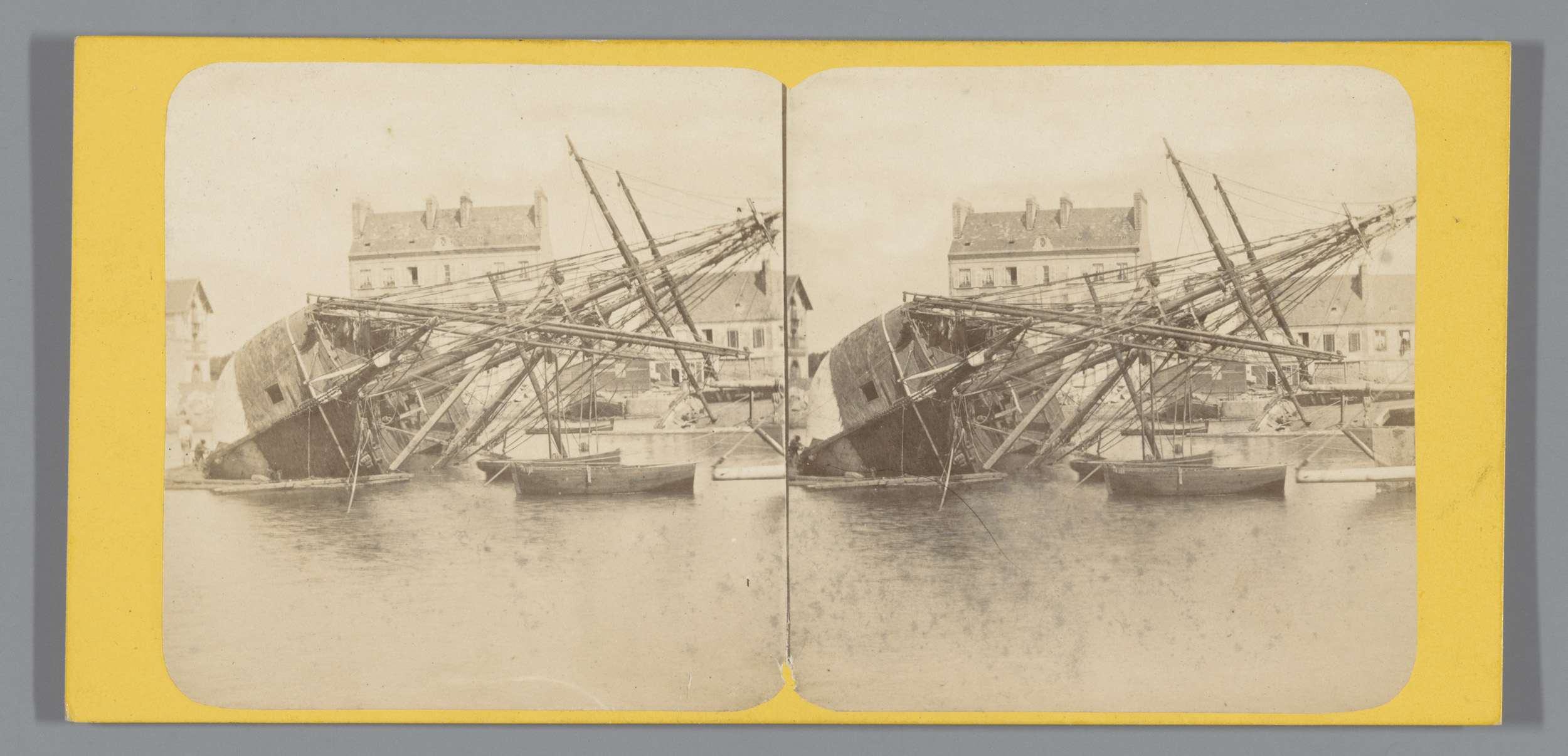 Gekrengd schip te Cherbourg