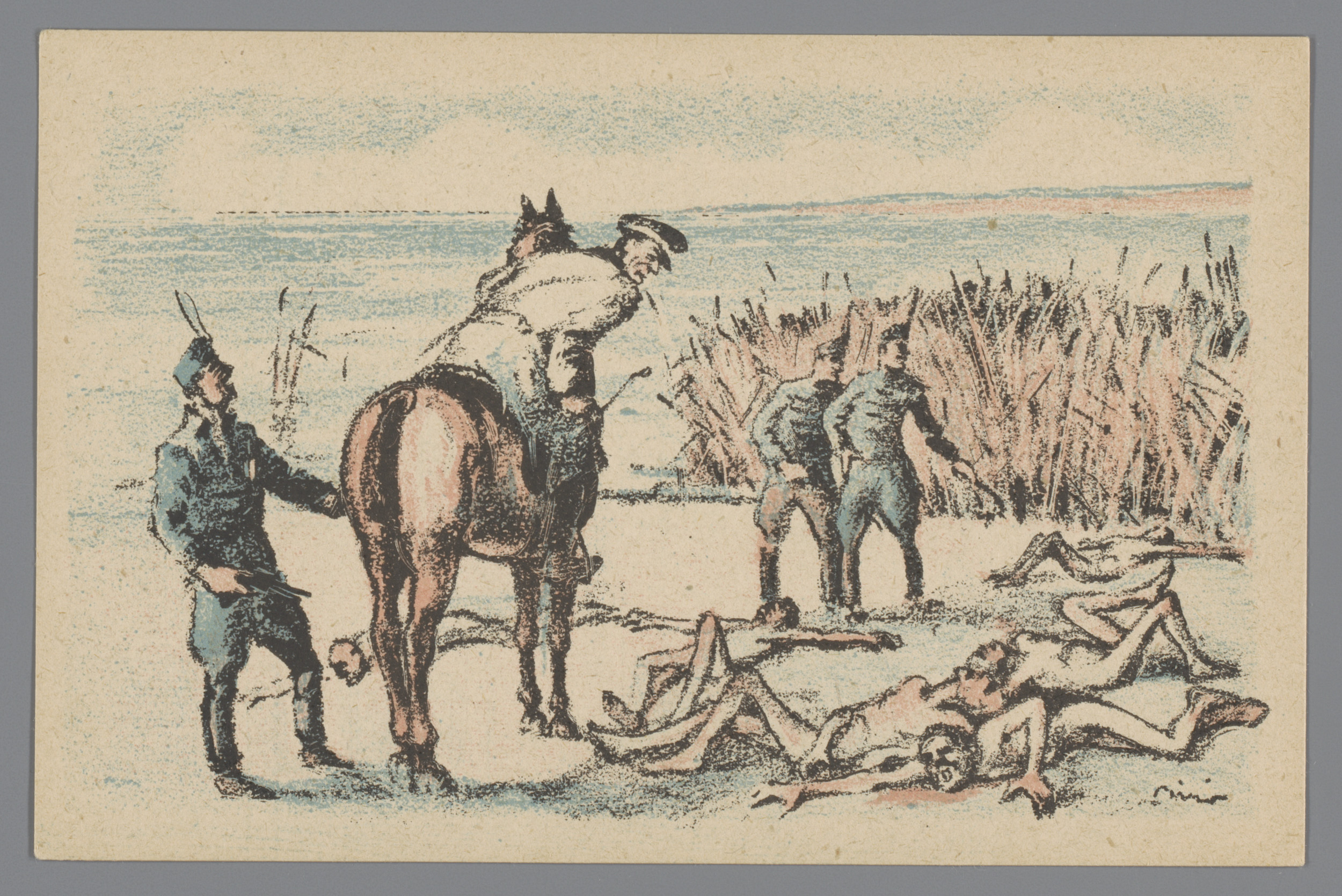 Miklós Horthy te paard spuugt op vermoorde mensen