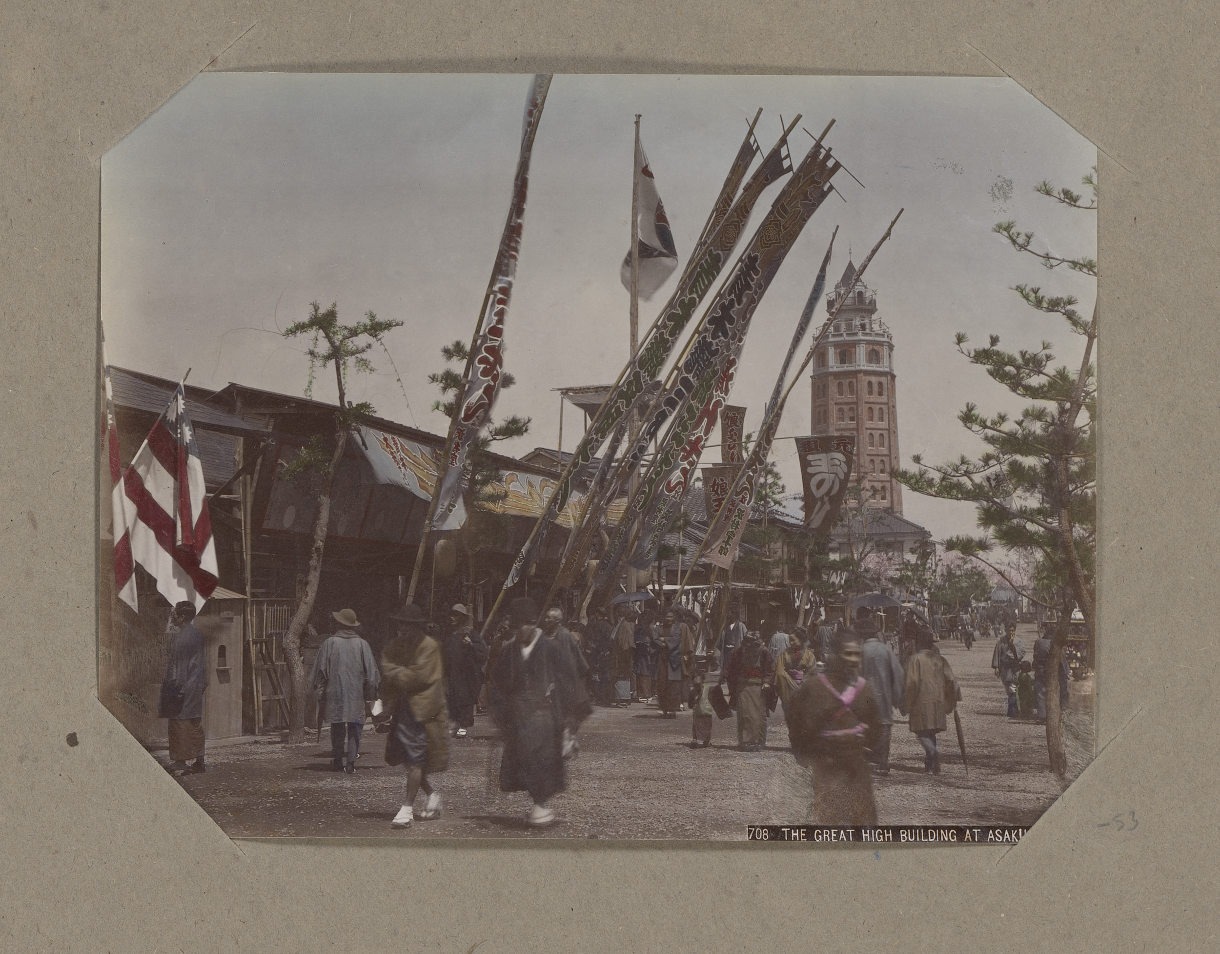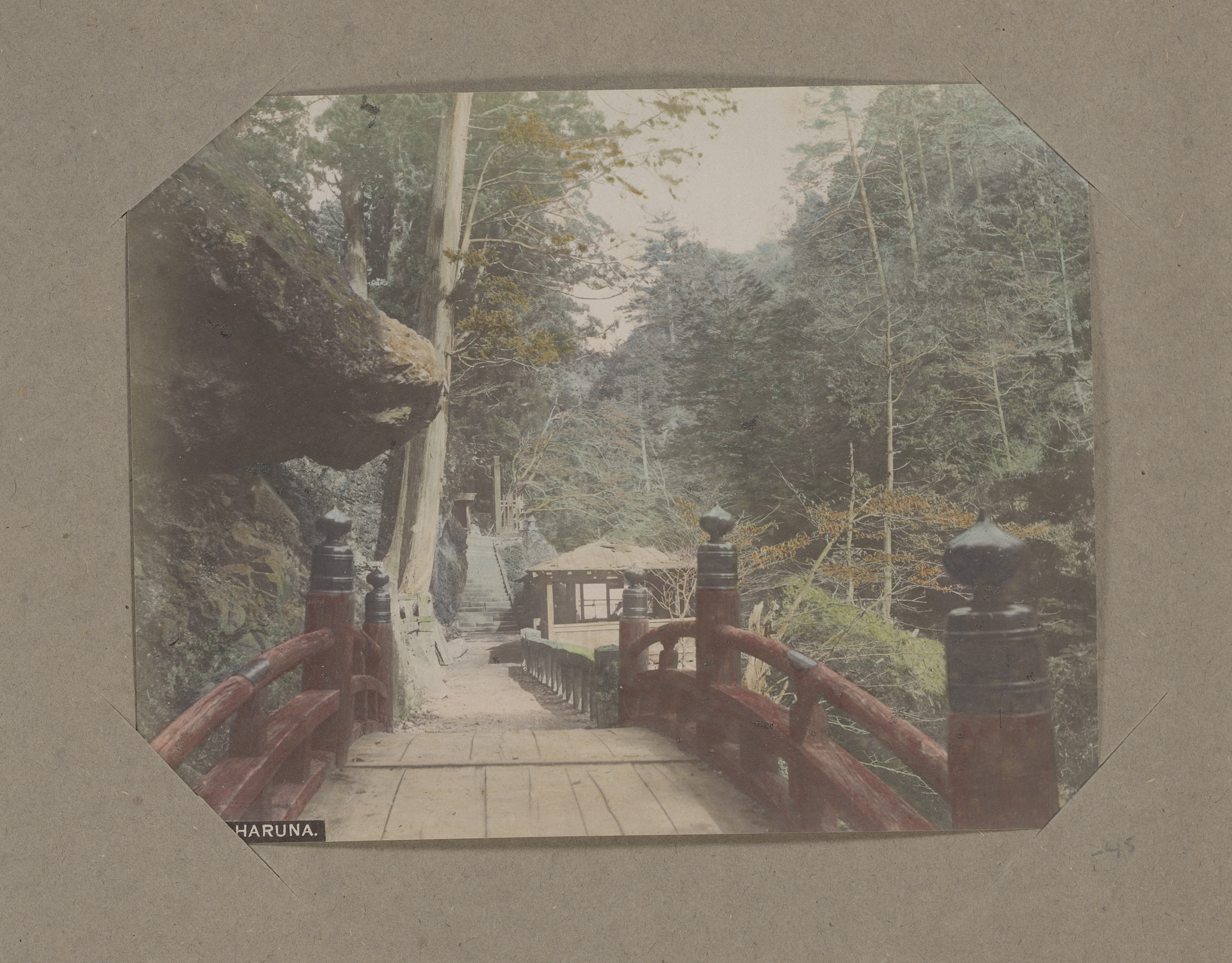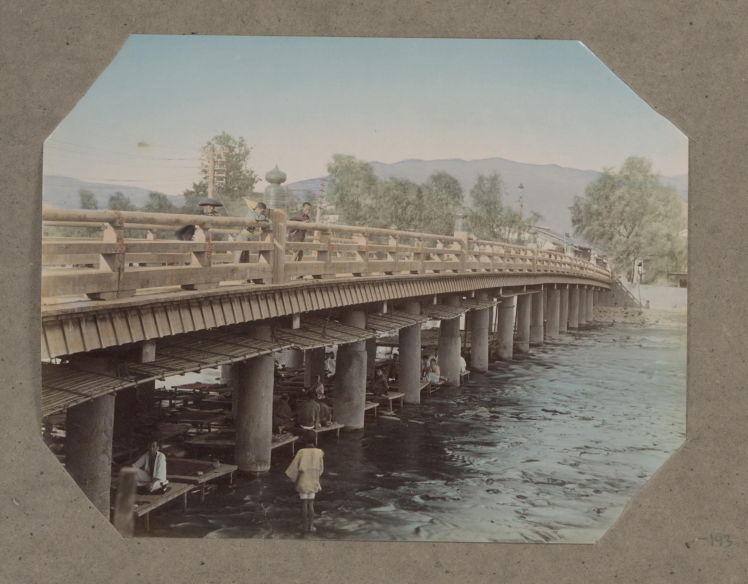 Gezicht op de Ka-Aibashi brug, met op de achtergrond...