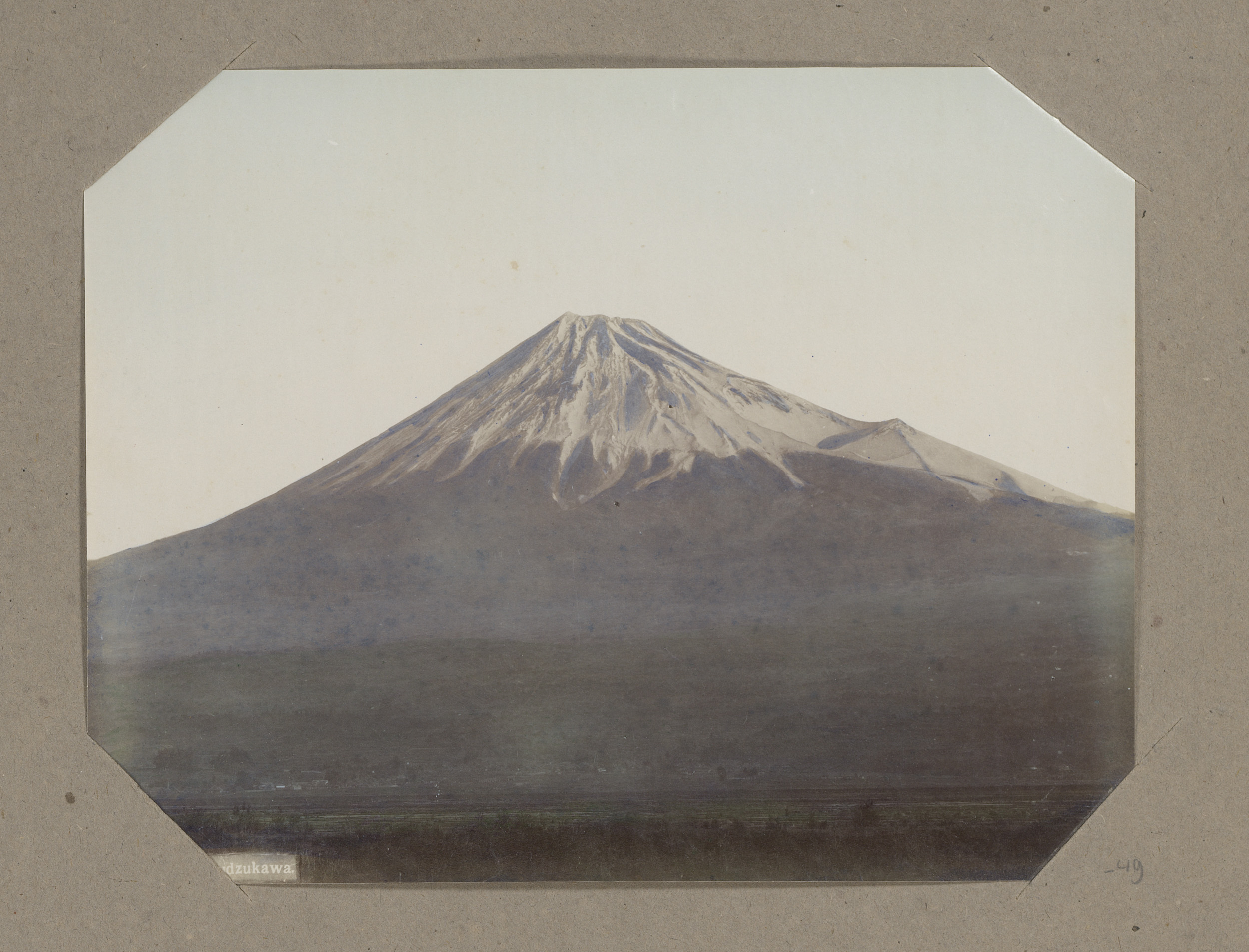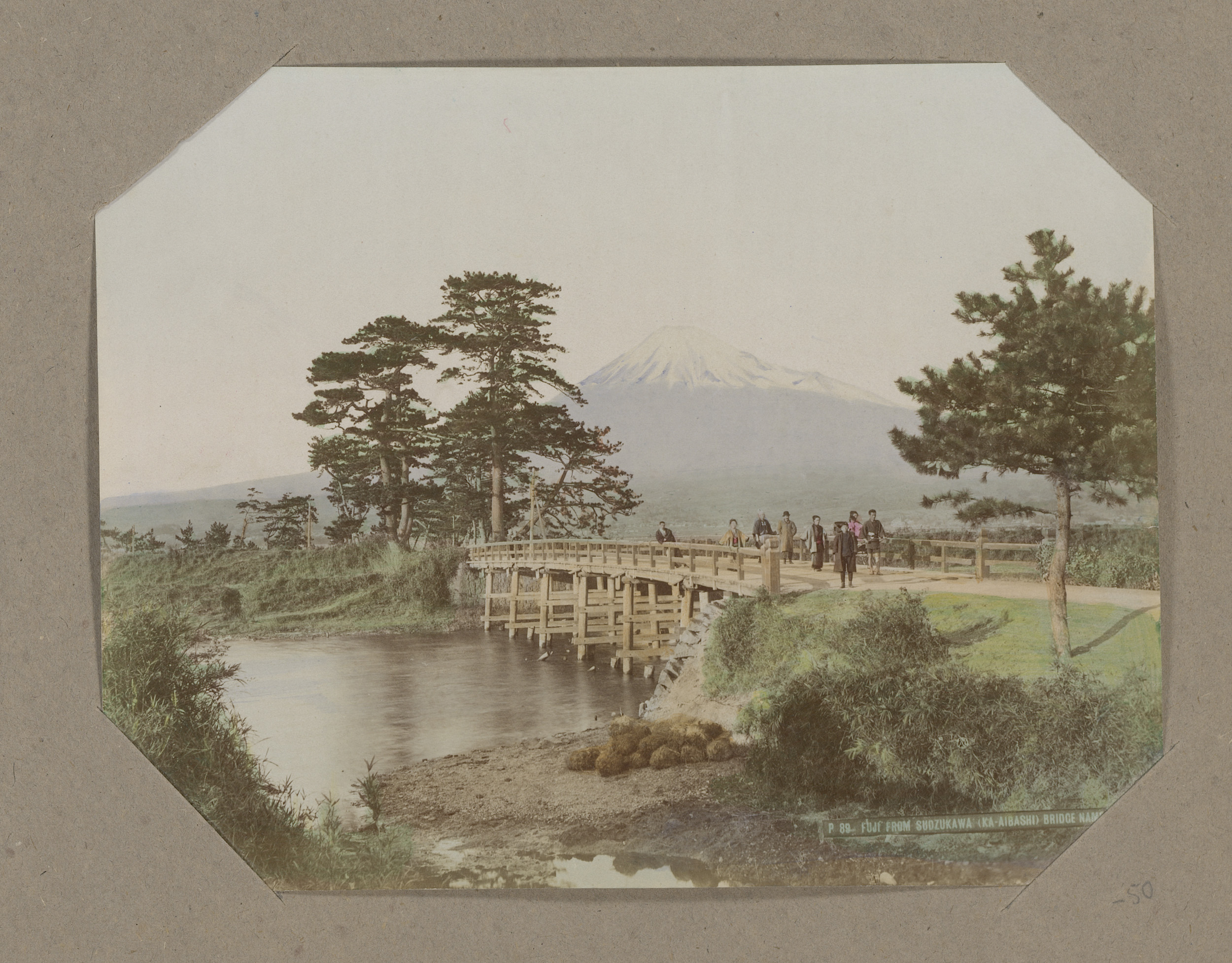 Gezicht op de berg Fuji vanaf Sudzukawa, Japan