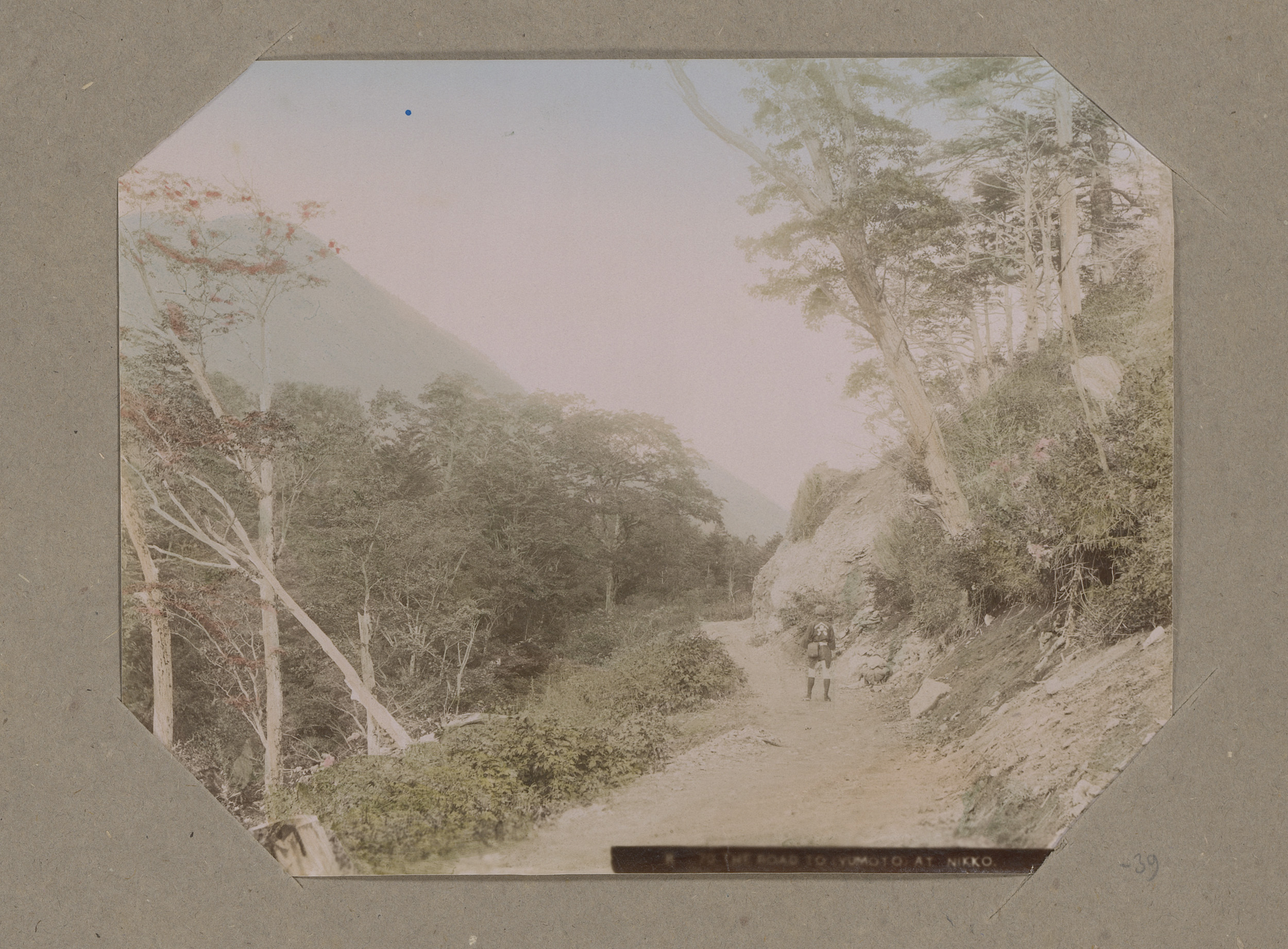 Wandelaar op de weg naar Yumoto bij Nikko, Japan