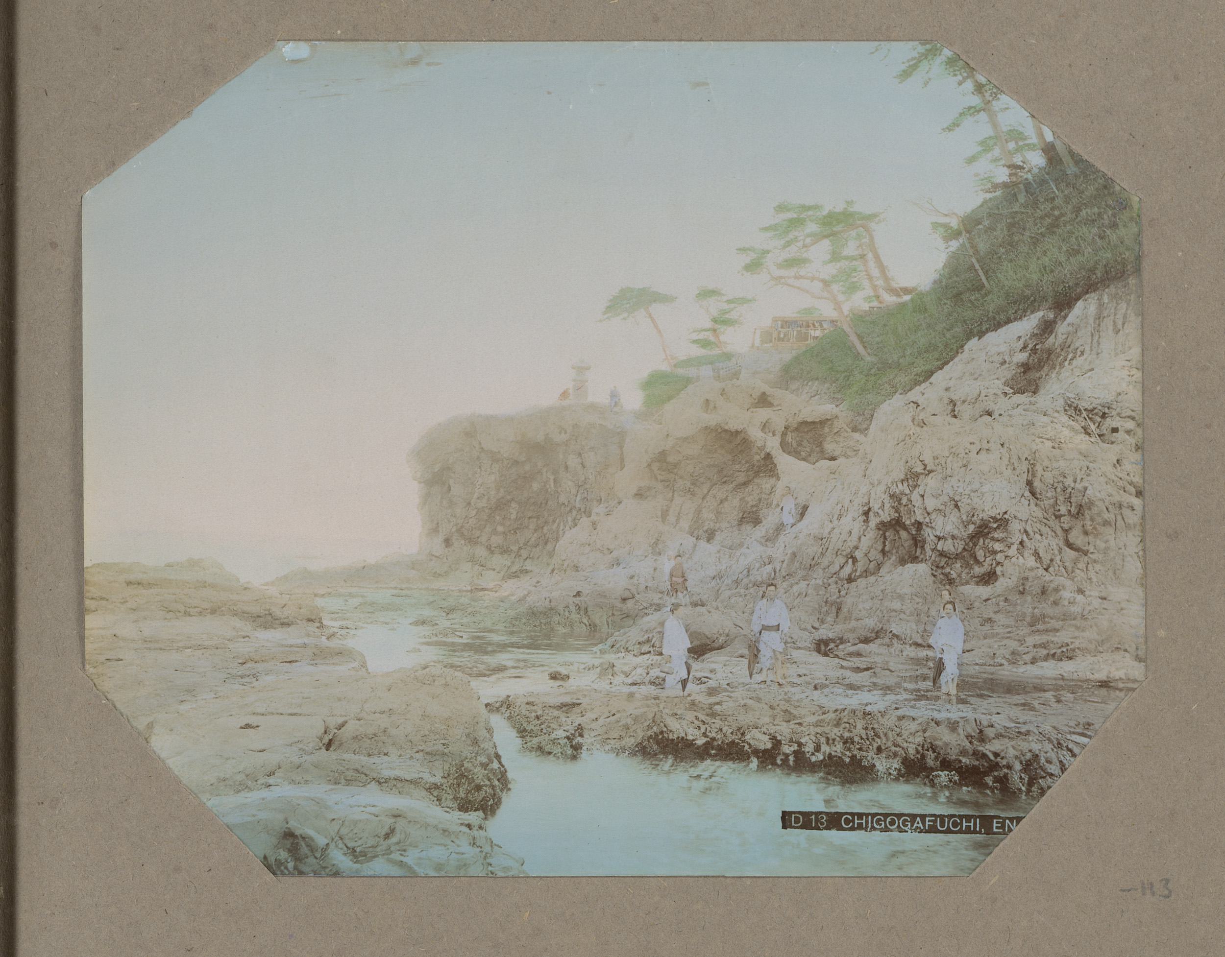 Mannen en vrouwen aan de kust bij Chigogafuchi op En...