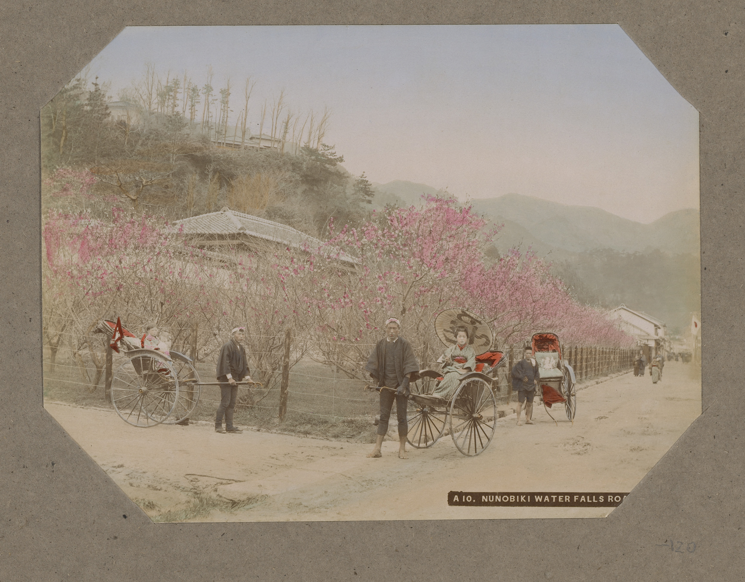 Riksja's op de weg naar de Nunobiki watervallen in K...