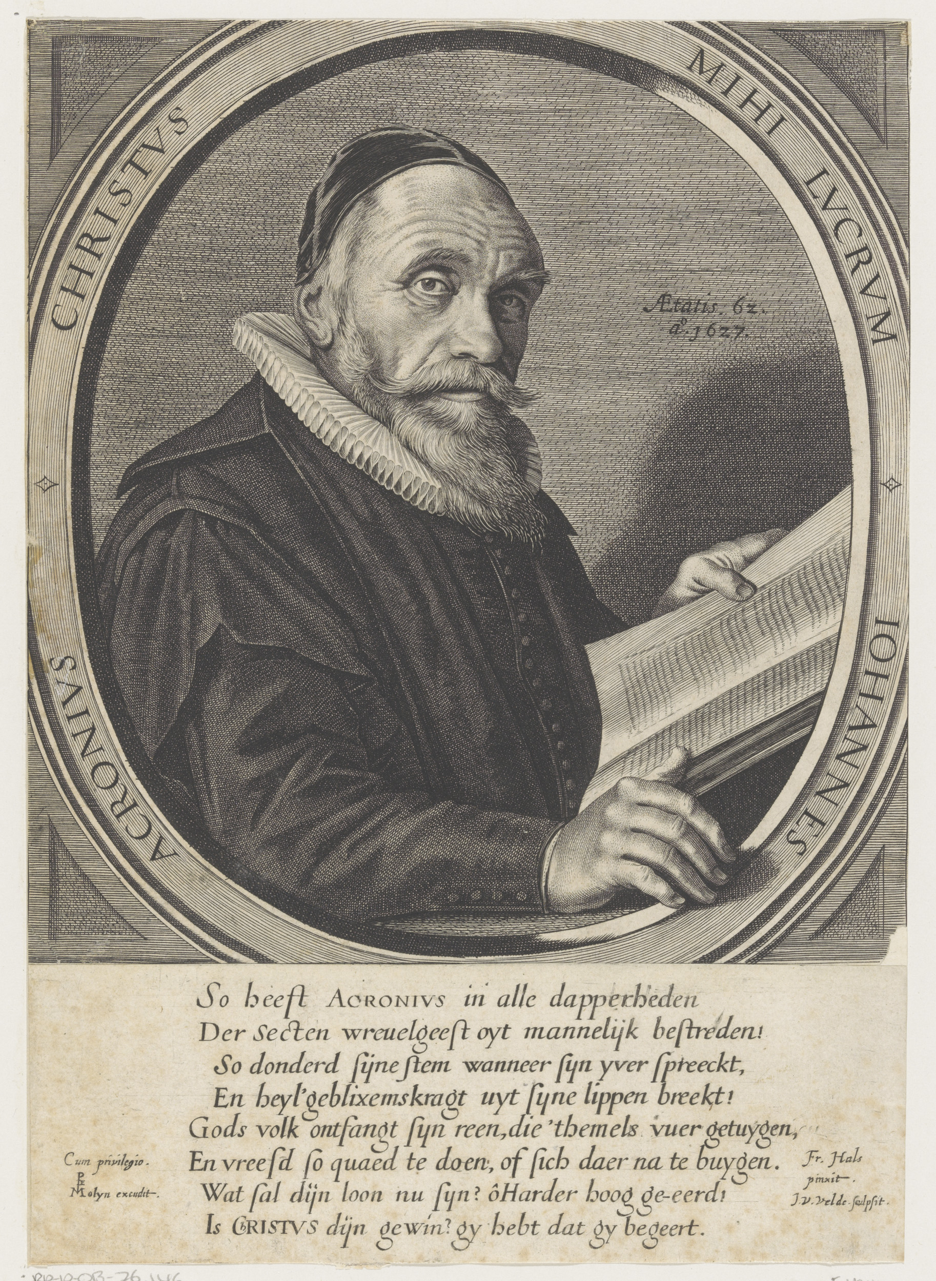 Portret van Johannes Acronius op 62-jarige leeftijd