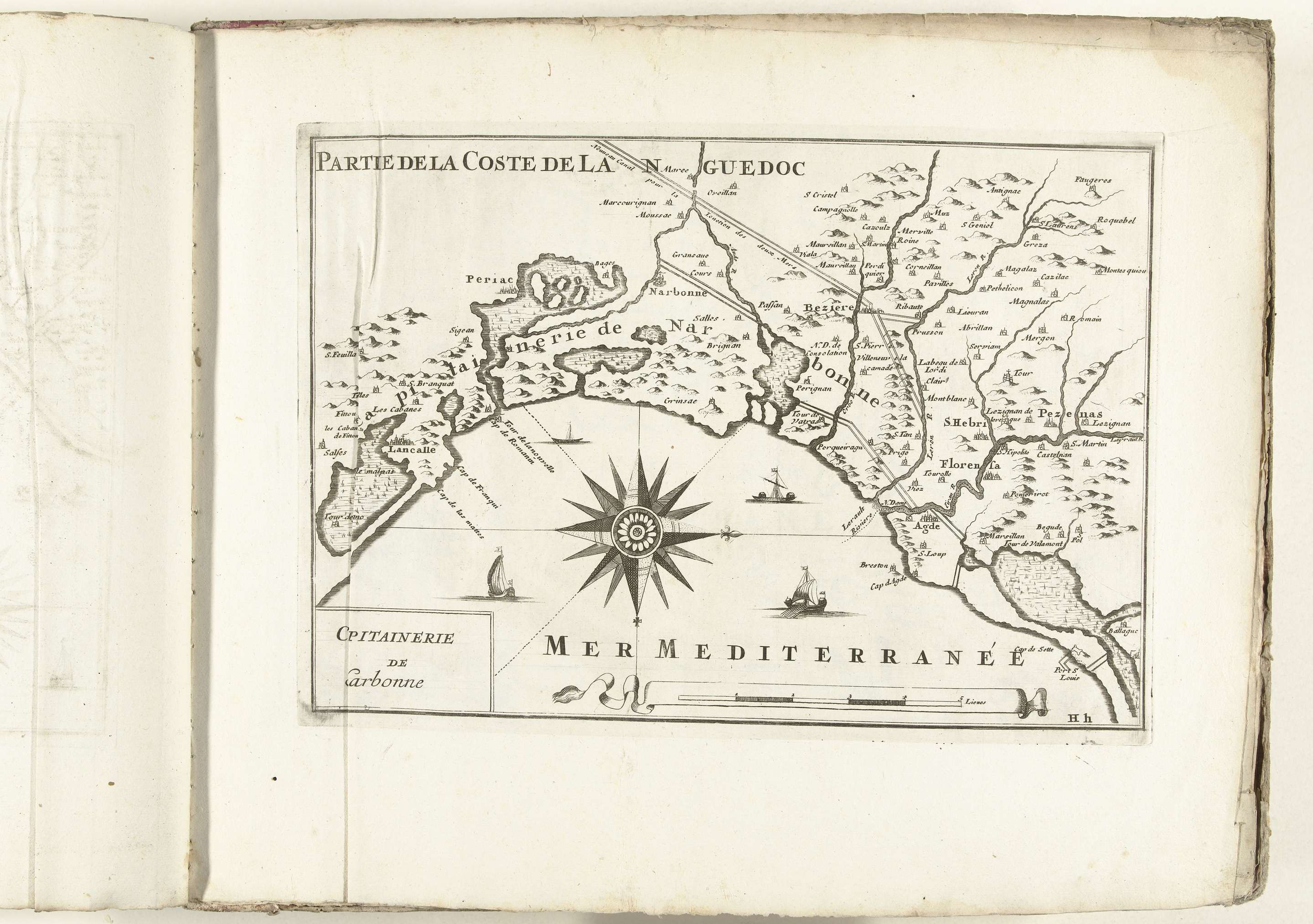Kaart van de Franse zuidkust bij Narbonne, ca. 1702