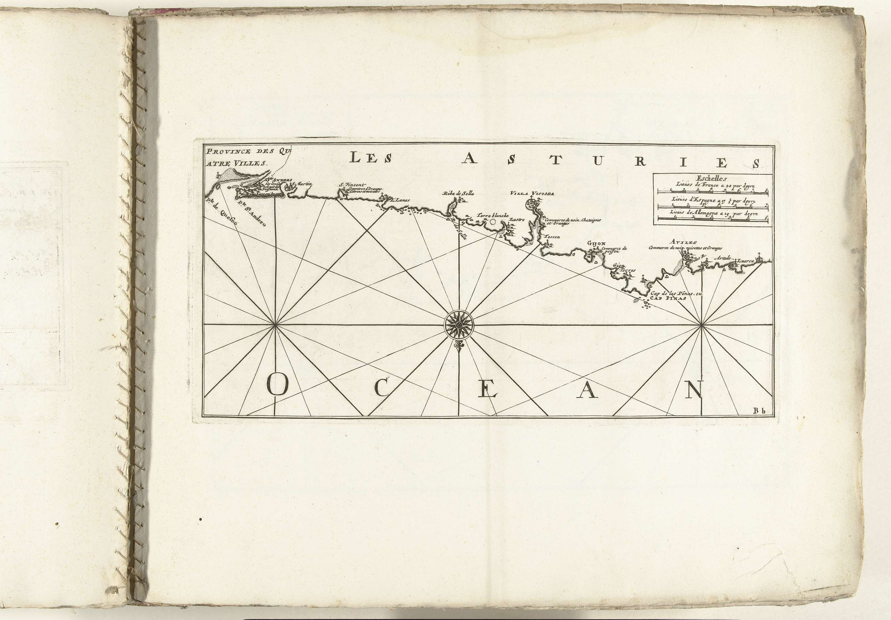 Kaart van de Spaanse noordkust bij Gijón, ca. 1702