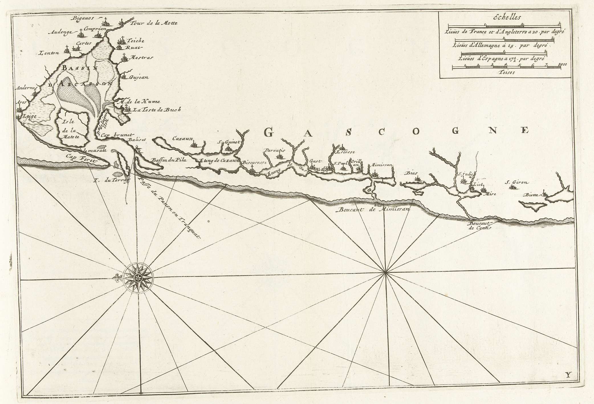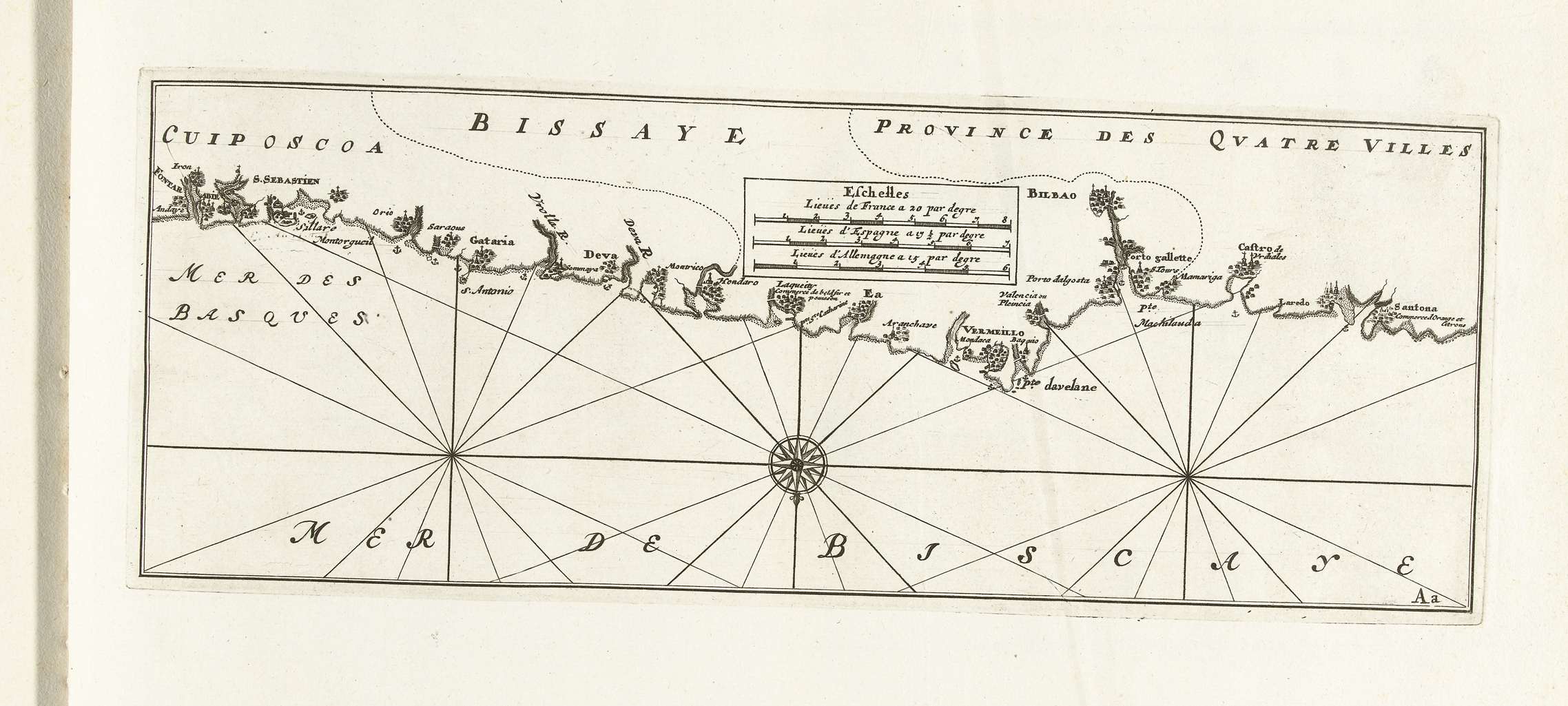 Kaart van de kust van Gascogne, ca. 1702