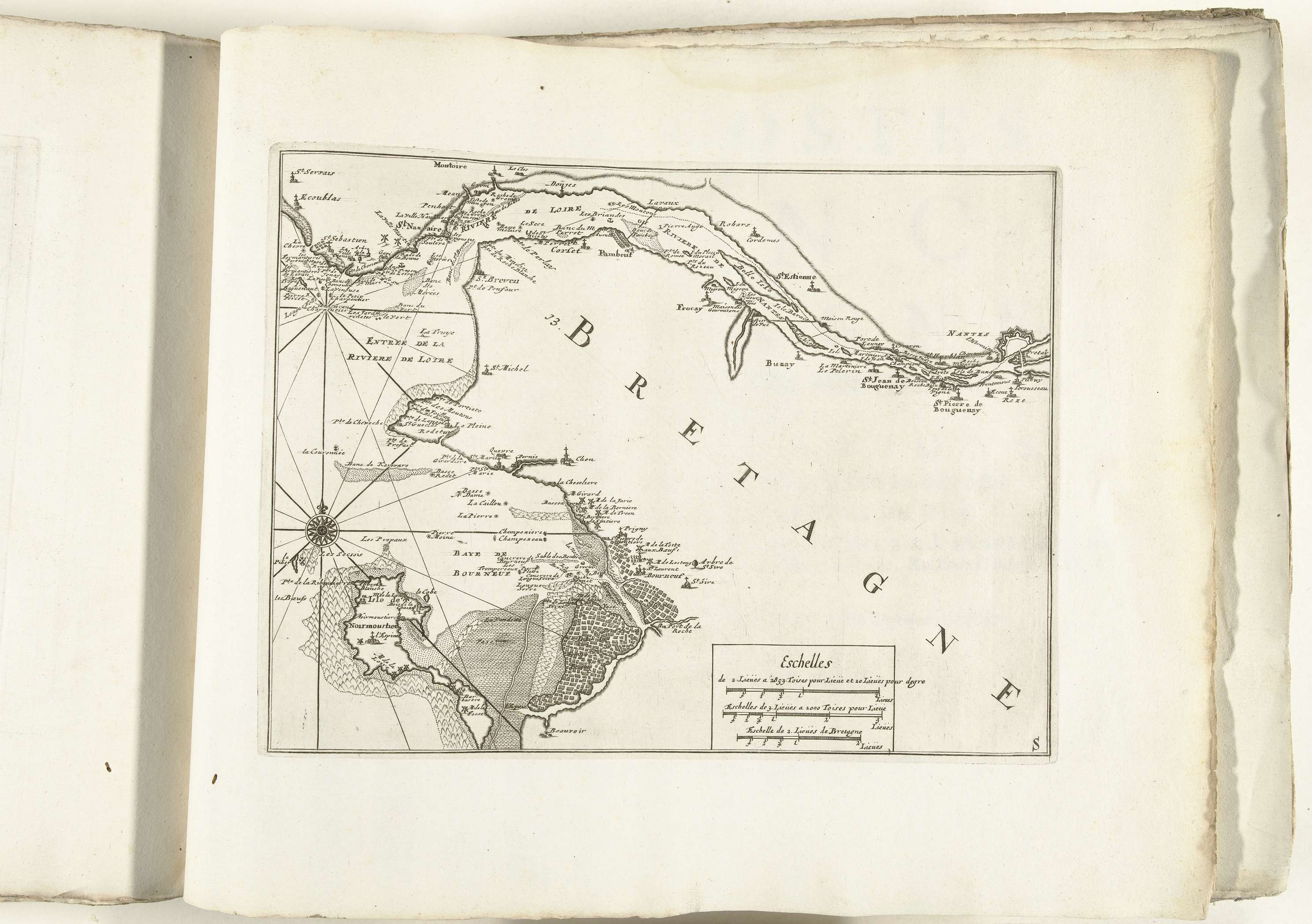 Kaart van de zuidkust van Bretagne bij Nantes, ca. 1702
