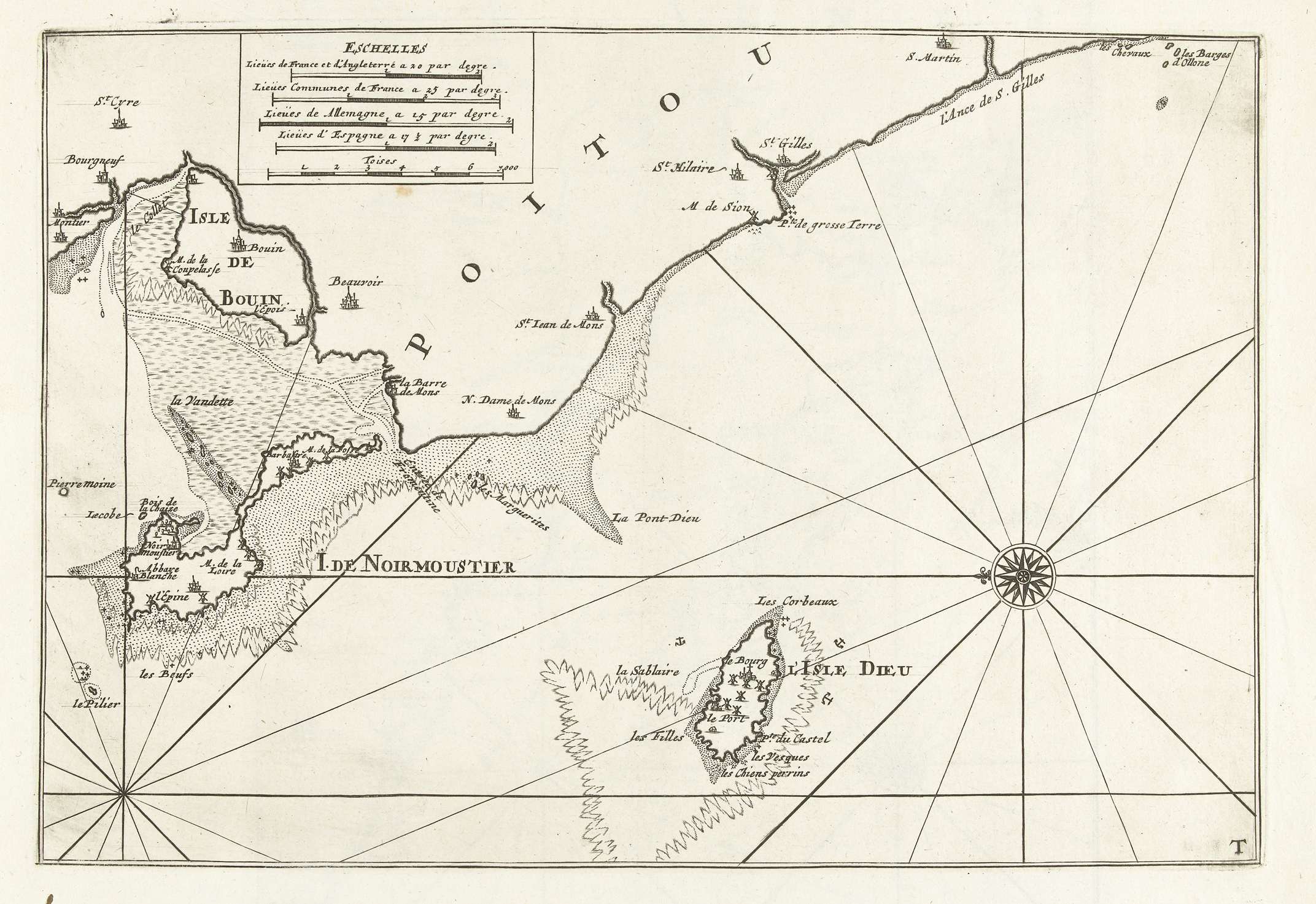 Kaart van de Franse westkust bij Île de Noirmoutier,...
