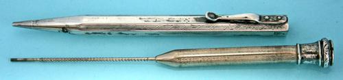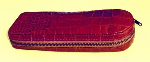 Sigarenetui van bruin, zacht leer met zilver beslag,...