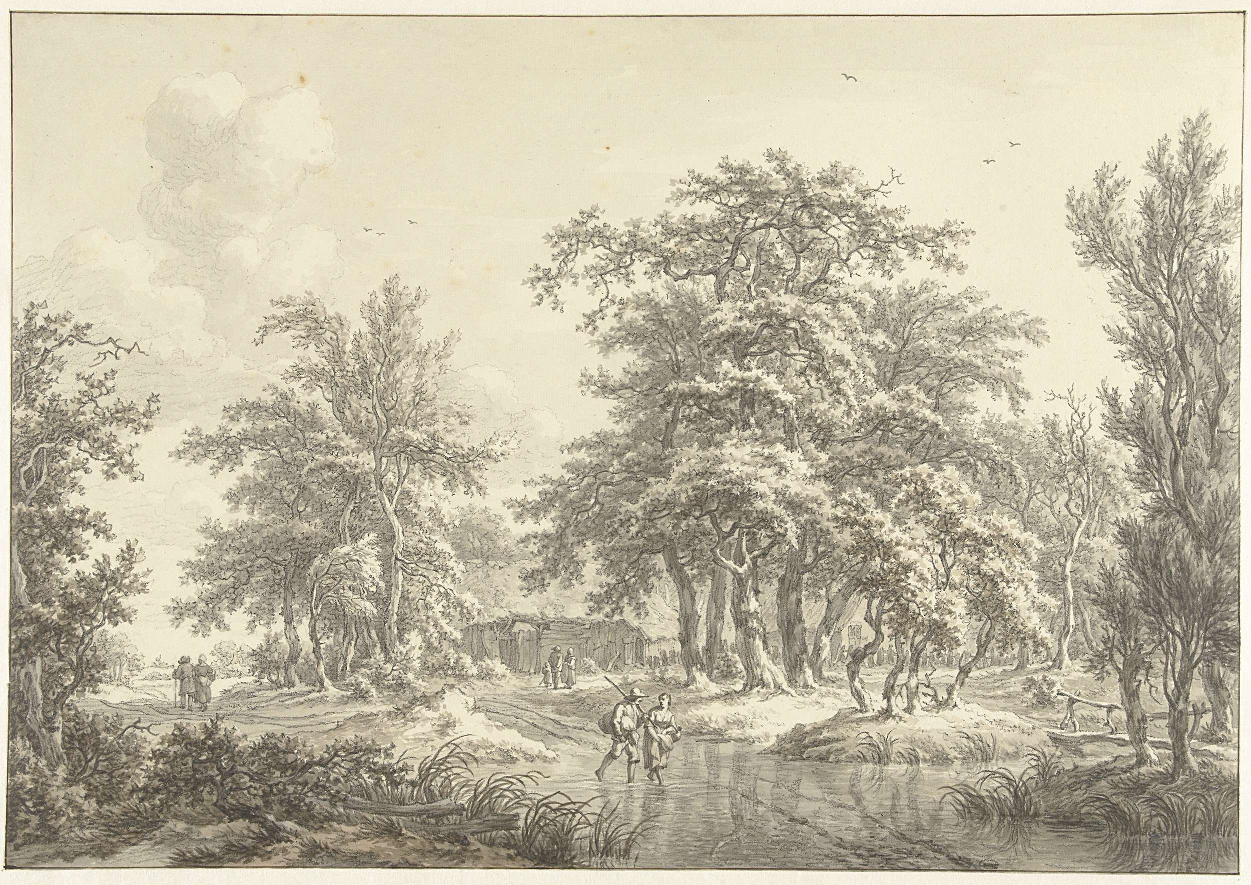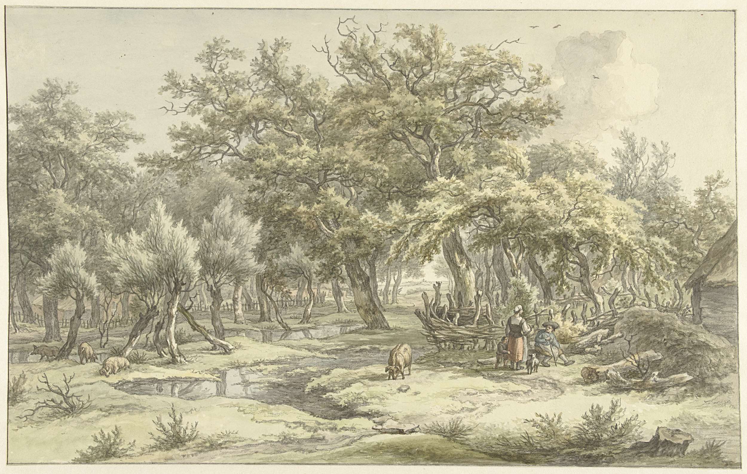 Boomrijk landschap met enkele groepjes figuren