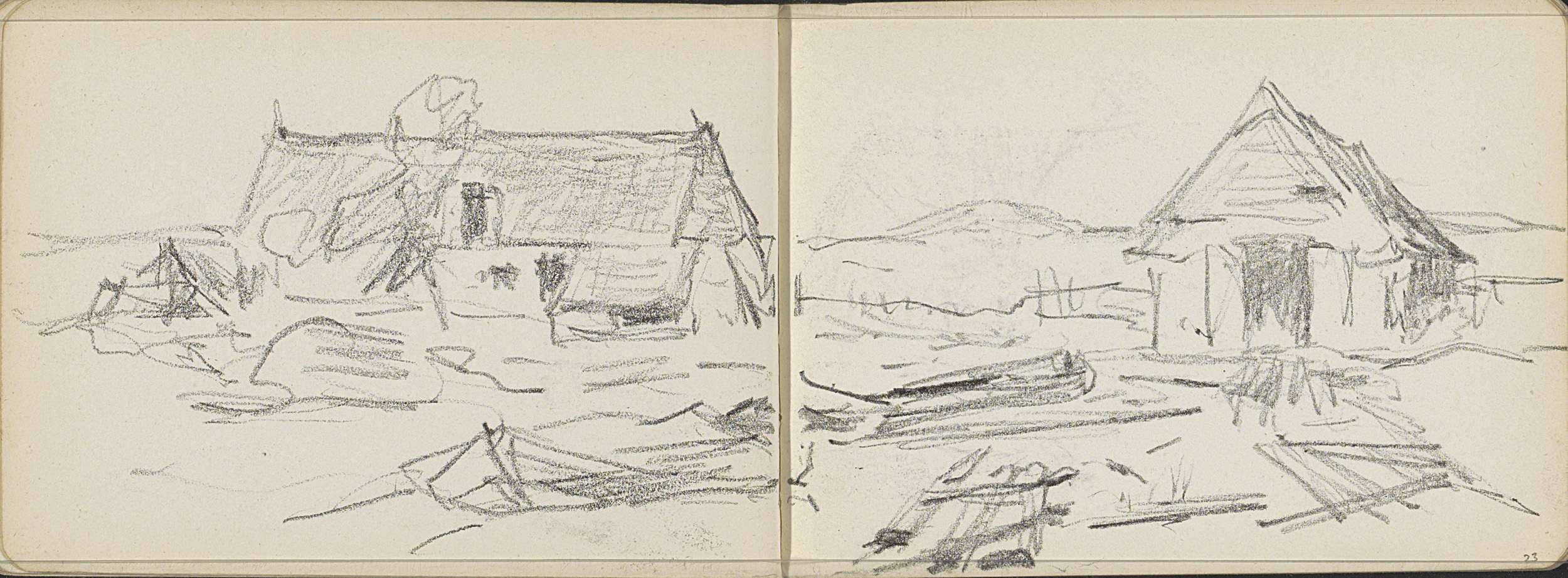Landschap met twee arbeiderswoningen