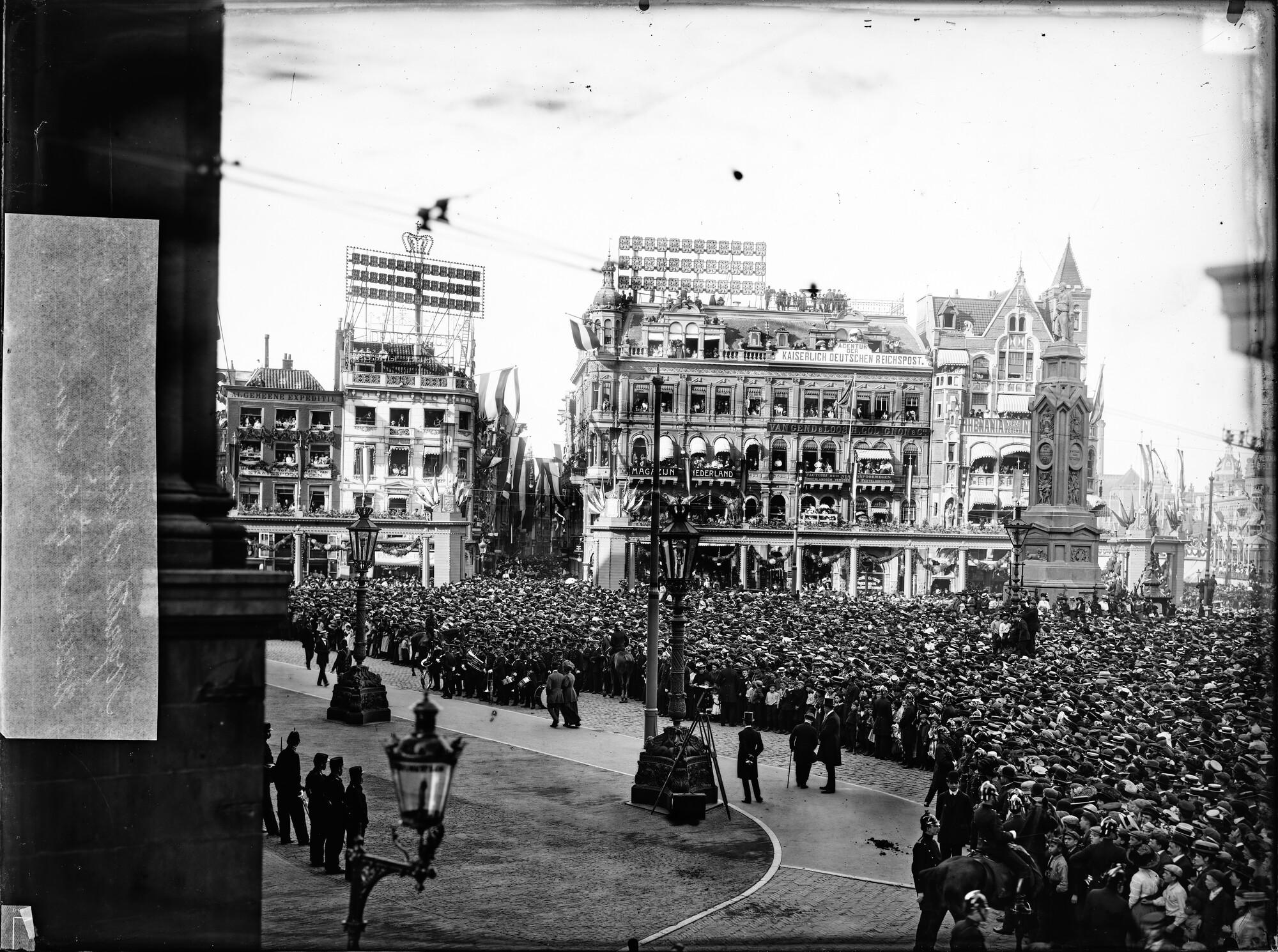 Paleis op de Dam tijdens de inhuldigingsfeesten van ...