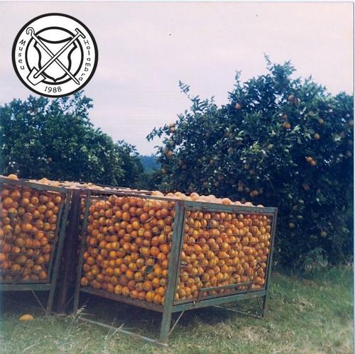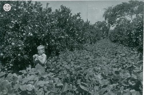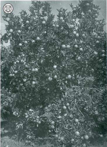 Geoogste sinaasappels in ‘kooien’ op de boomgaard