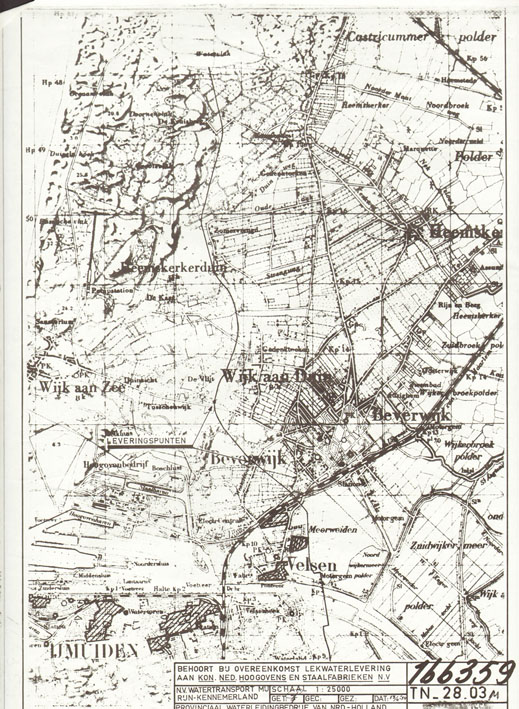 Kaart van Lekwaterlevering Hoogovens