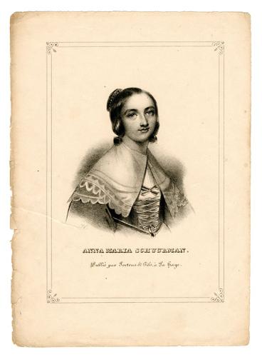 Houtsnede met portret van Anna Maria van Schurman