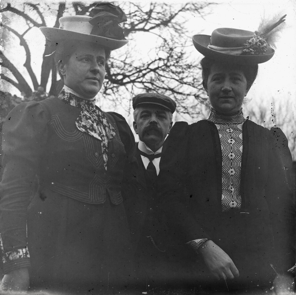 Portret van twee vrouwen en een man