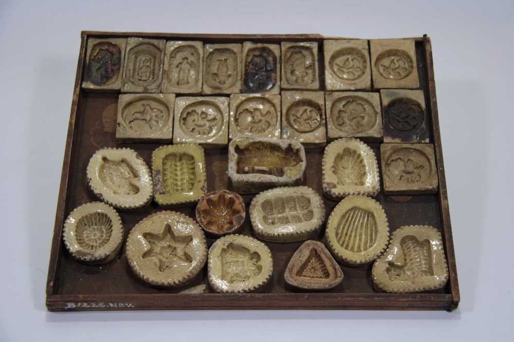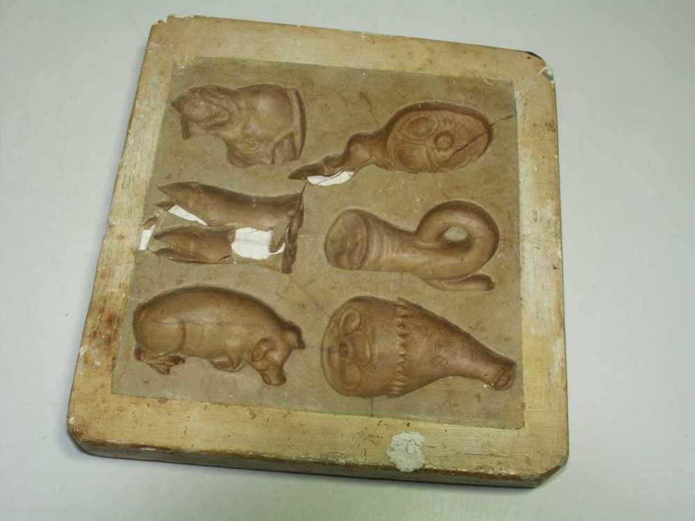 Marsepeinvorm van gips en zwavel met 6 figuren: een ...