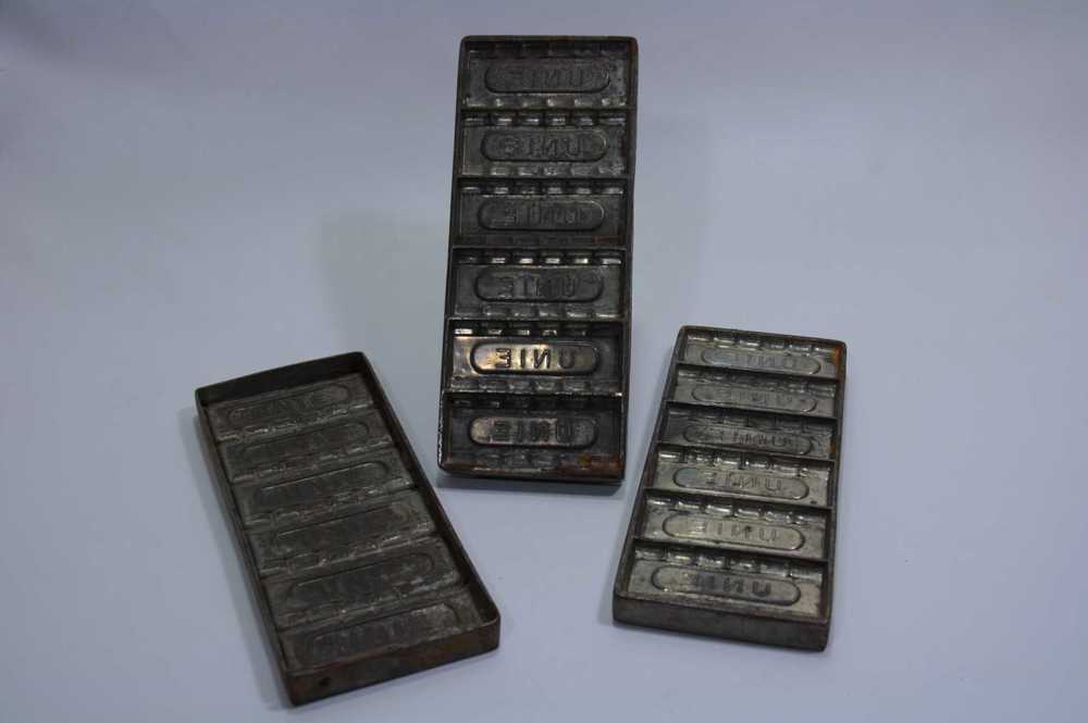 Chocoladevorm van metaal voor 8 repen uit de 20e eeuw