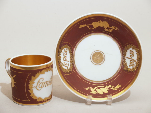 Kop en schotel met opschriften L'Amitié en Fait Le Prix