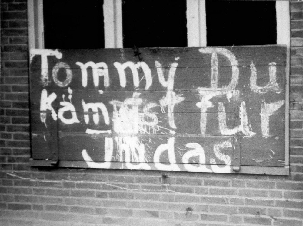 Oorlogsschade, opschrift op bakkerij familie Vughts:...