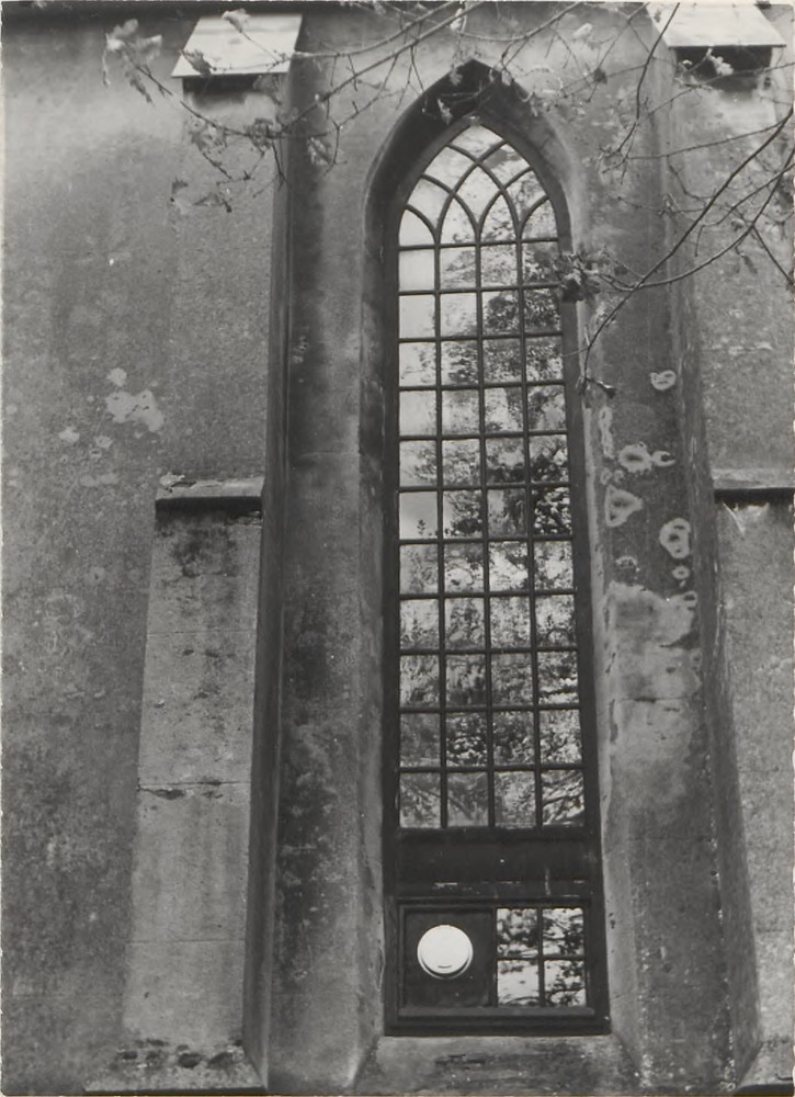 Detail van een der ramen in de gevel van de N.H. ker...