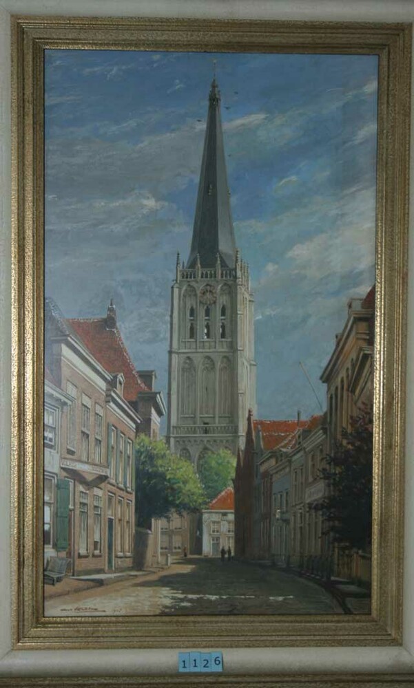 Gezicht op de huizen en de toren van de Grote of Mar...