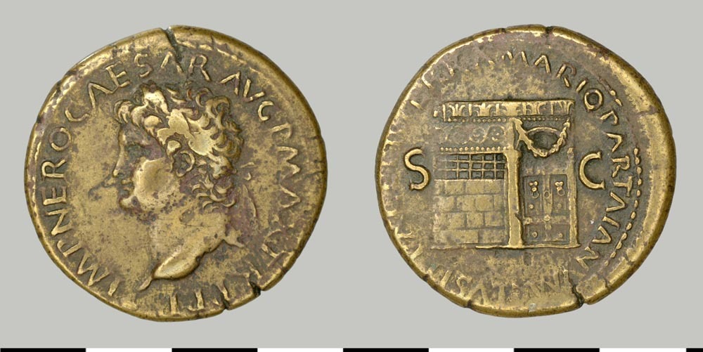 Sestertius van Nero, munt van koper uit de Romeinse ...