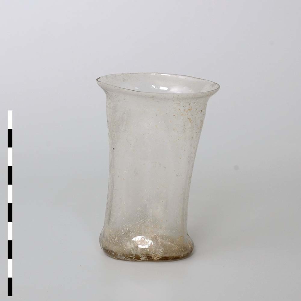 Beker van helder doorzichtig glas uit de Romeinse tijd