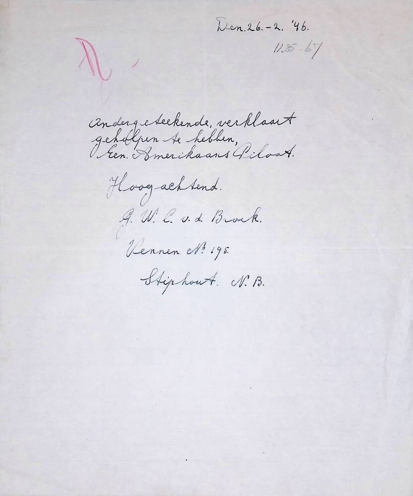 Brief betreffende pilotenhulp, G.W.C. v.d. Broek, St...