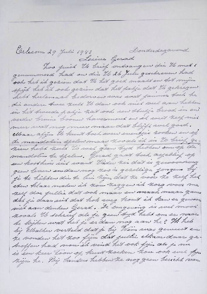 Brief in enveloppe. 29 juli 1943. Aan den heer G.C. ...