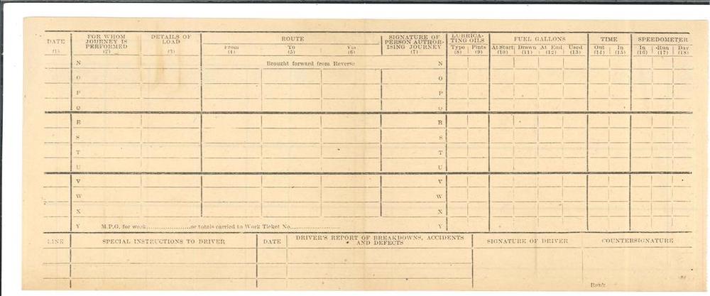 Transport work ticket, leeg