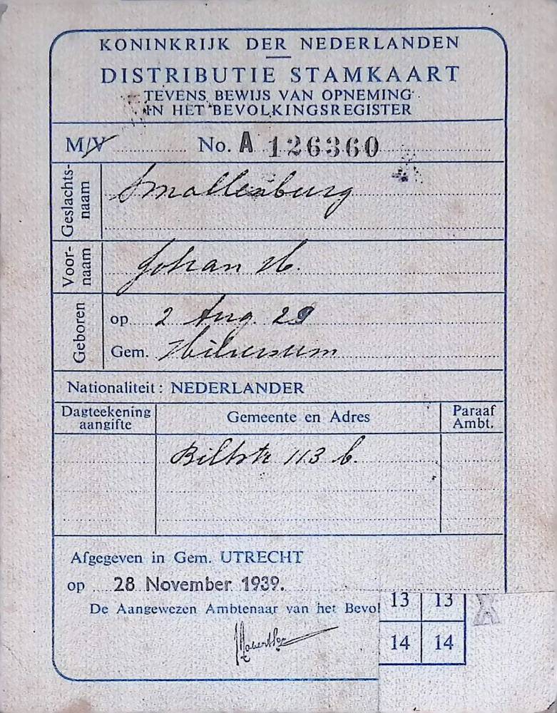 Distributiestamkaart op naam van Johan Hendrik Small...