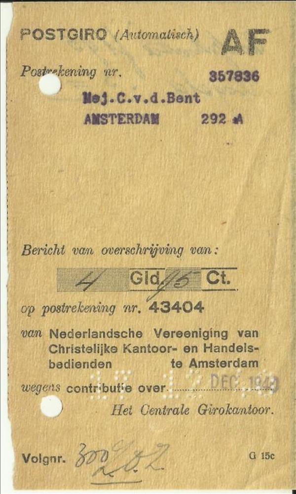 Reçu, Postgiro van Mej. C v.d Bent te Amsterdam, van...