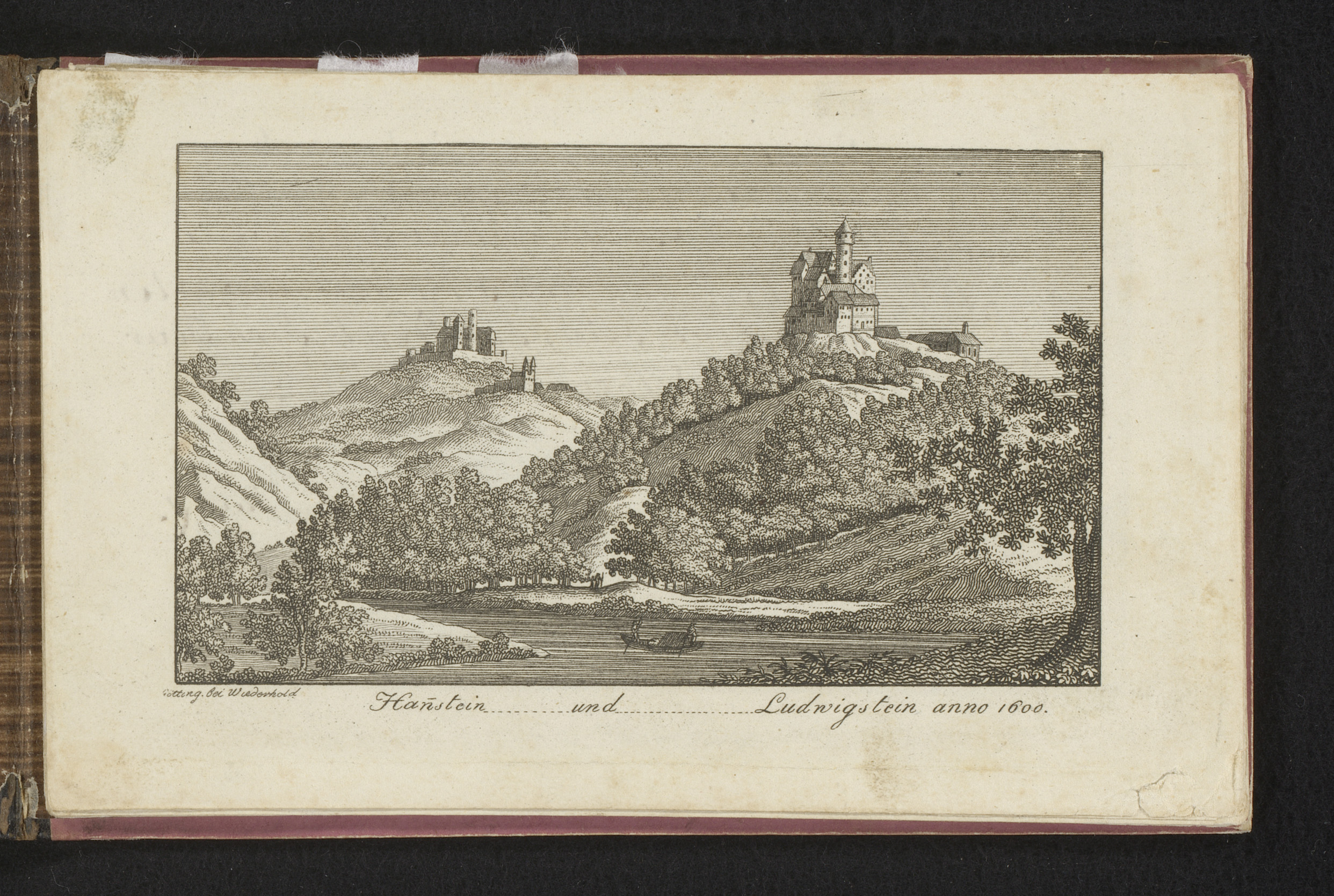 Gezicht op de rivier Werra en de kastelen Hanstein e...