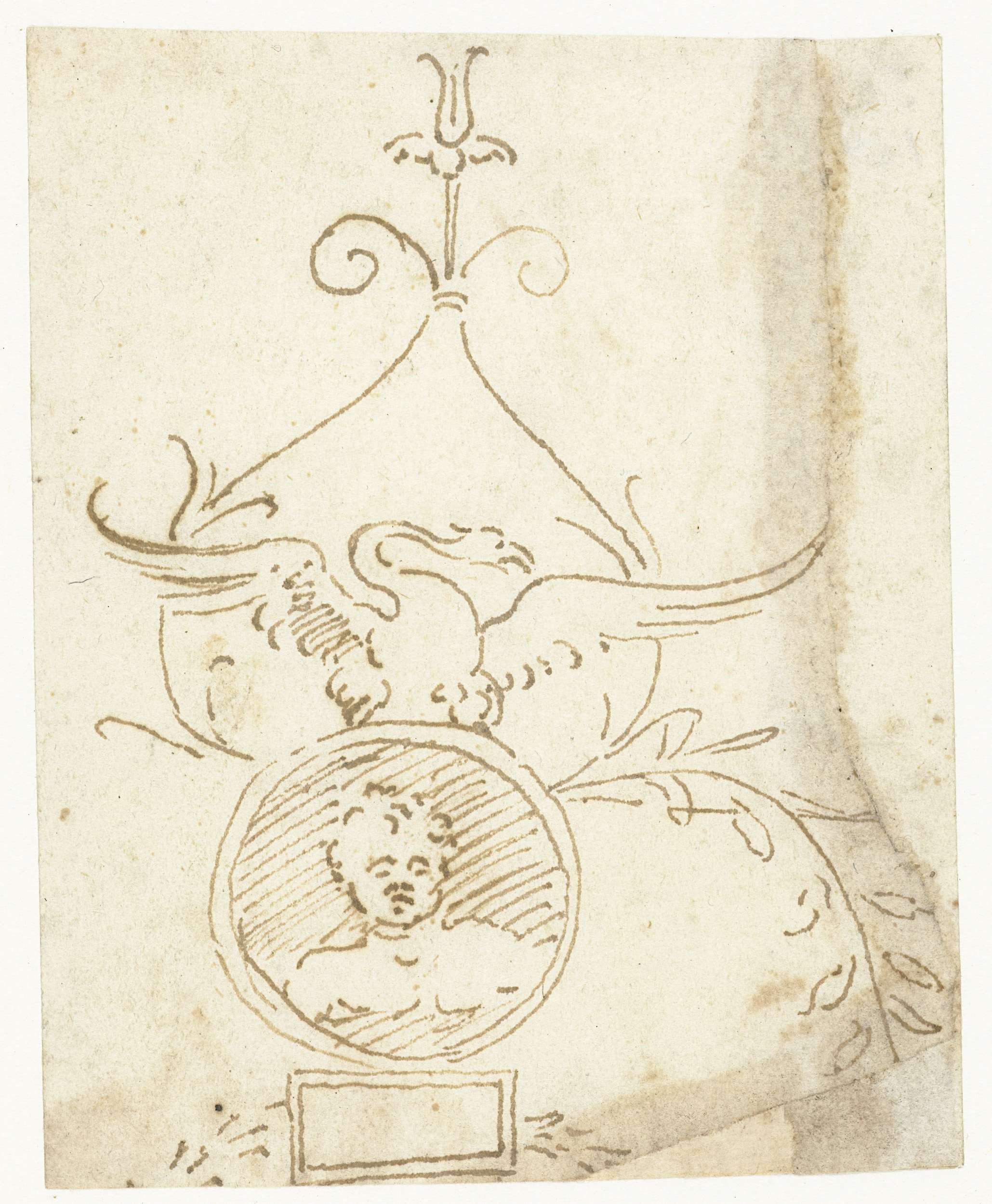 Deel van ornamentale paneelvulling met een putto in ...