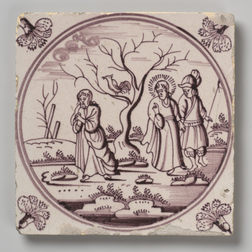 tegel van aardewerk met tinglazuur, voorstellende: P...