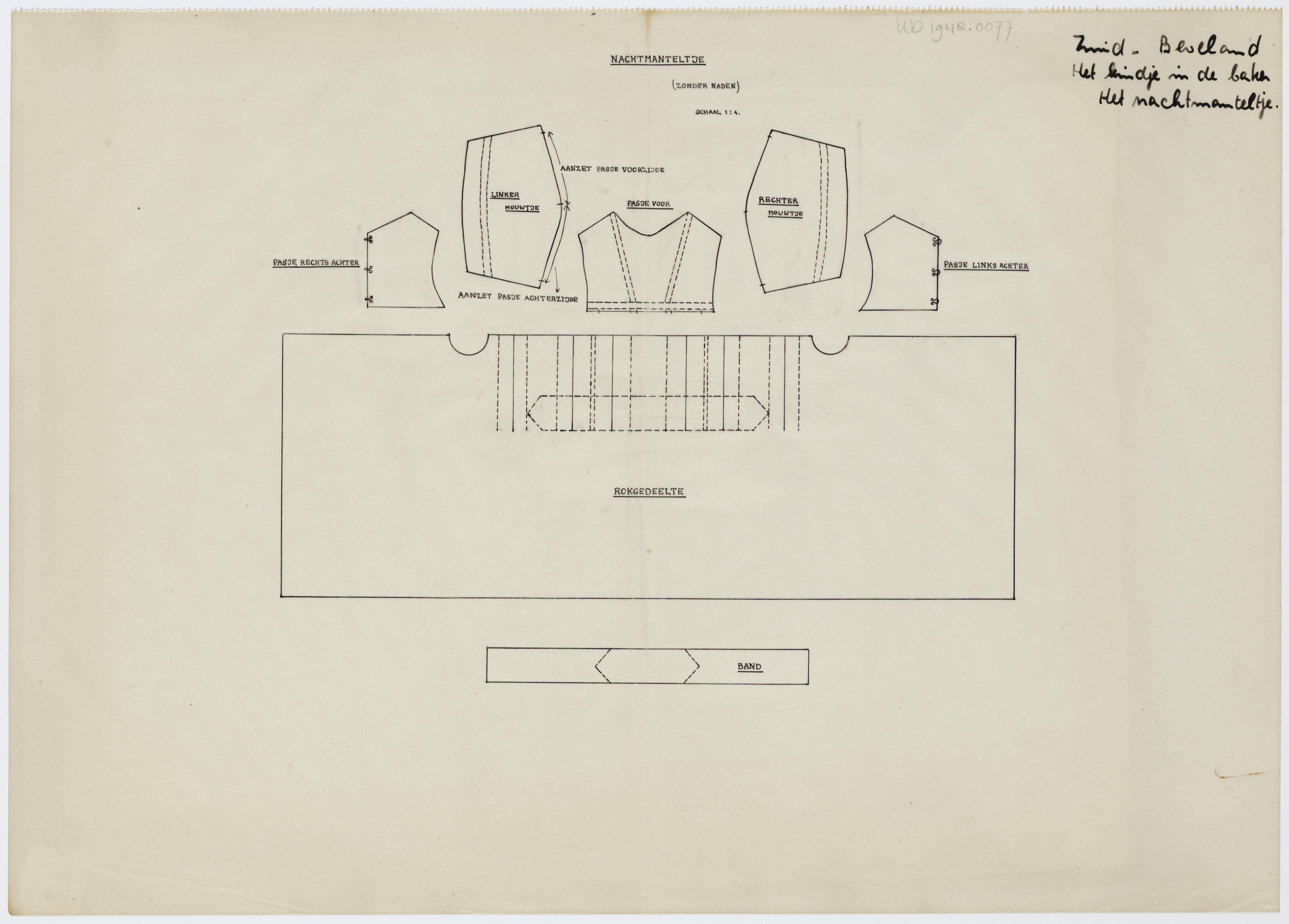 Patroontekening nachtmantel, bakerkind Zuid-Beveland...