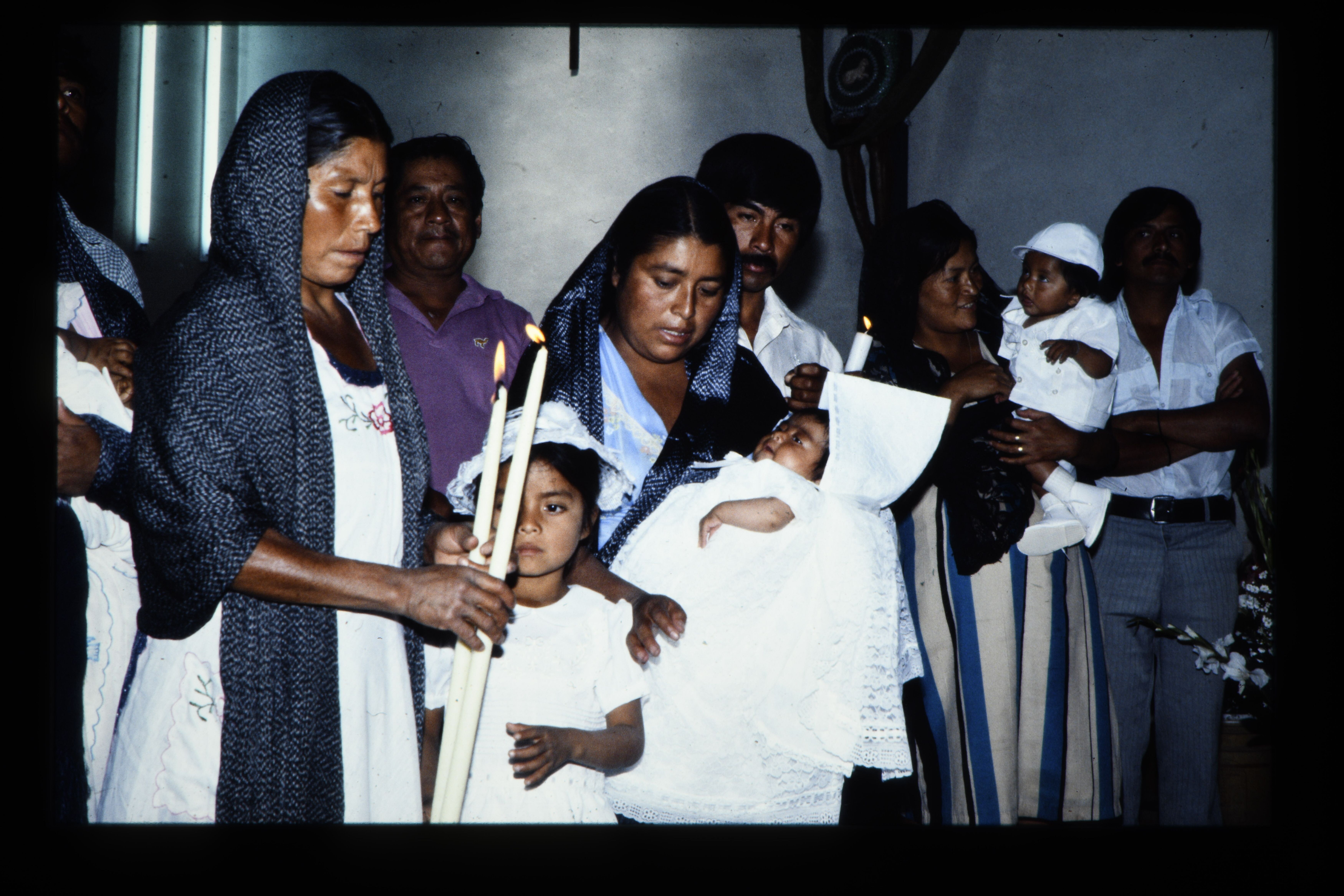'Kinderdoop in de kerk. Santa María Atzompa.'