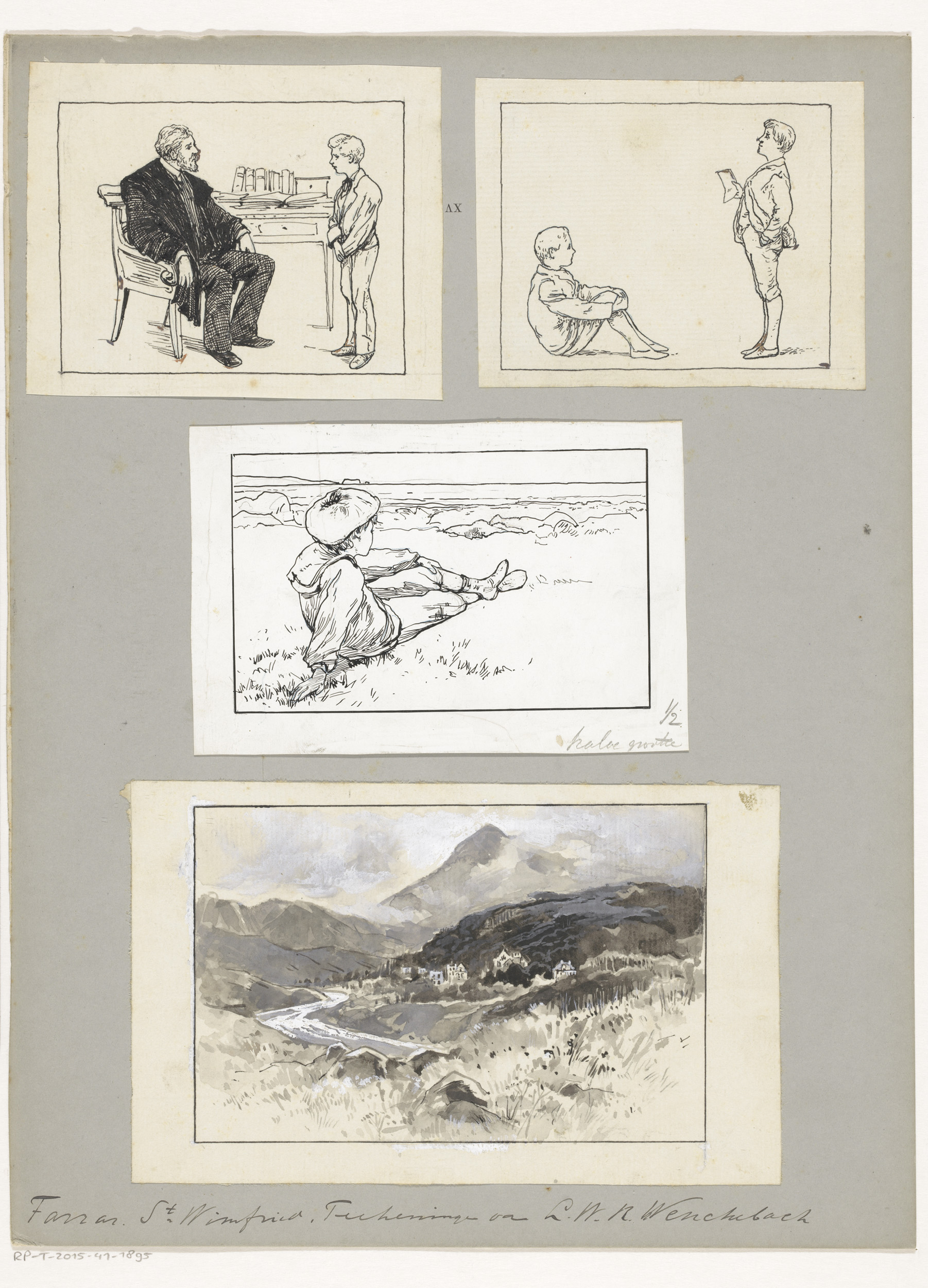 Drie scènes met jongens en een berglandschap