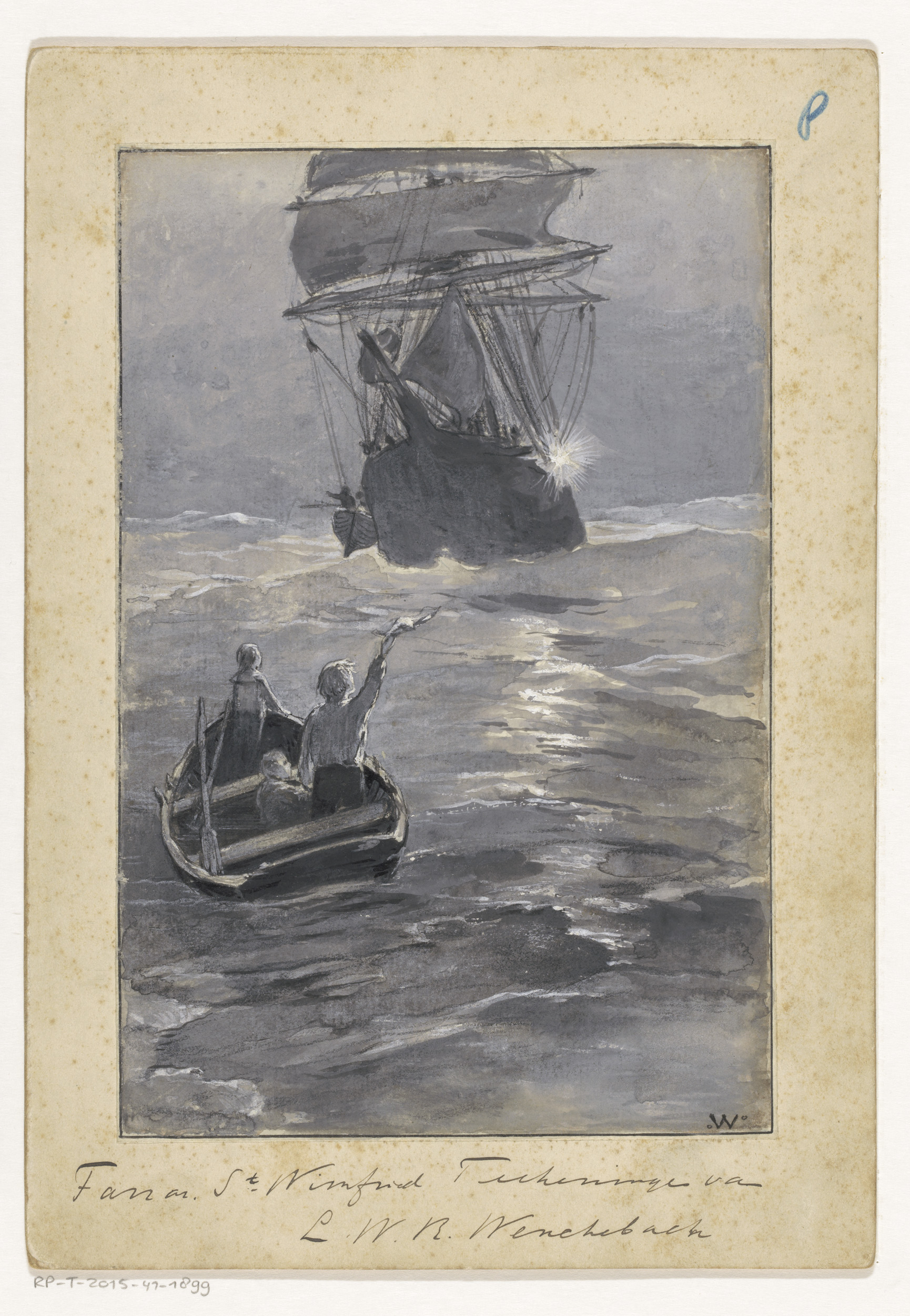 Jongens seinen naar een schip vanaf een zinkende roe...