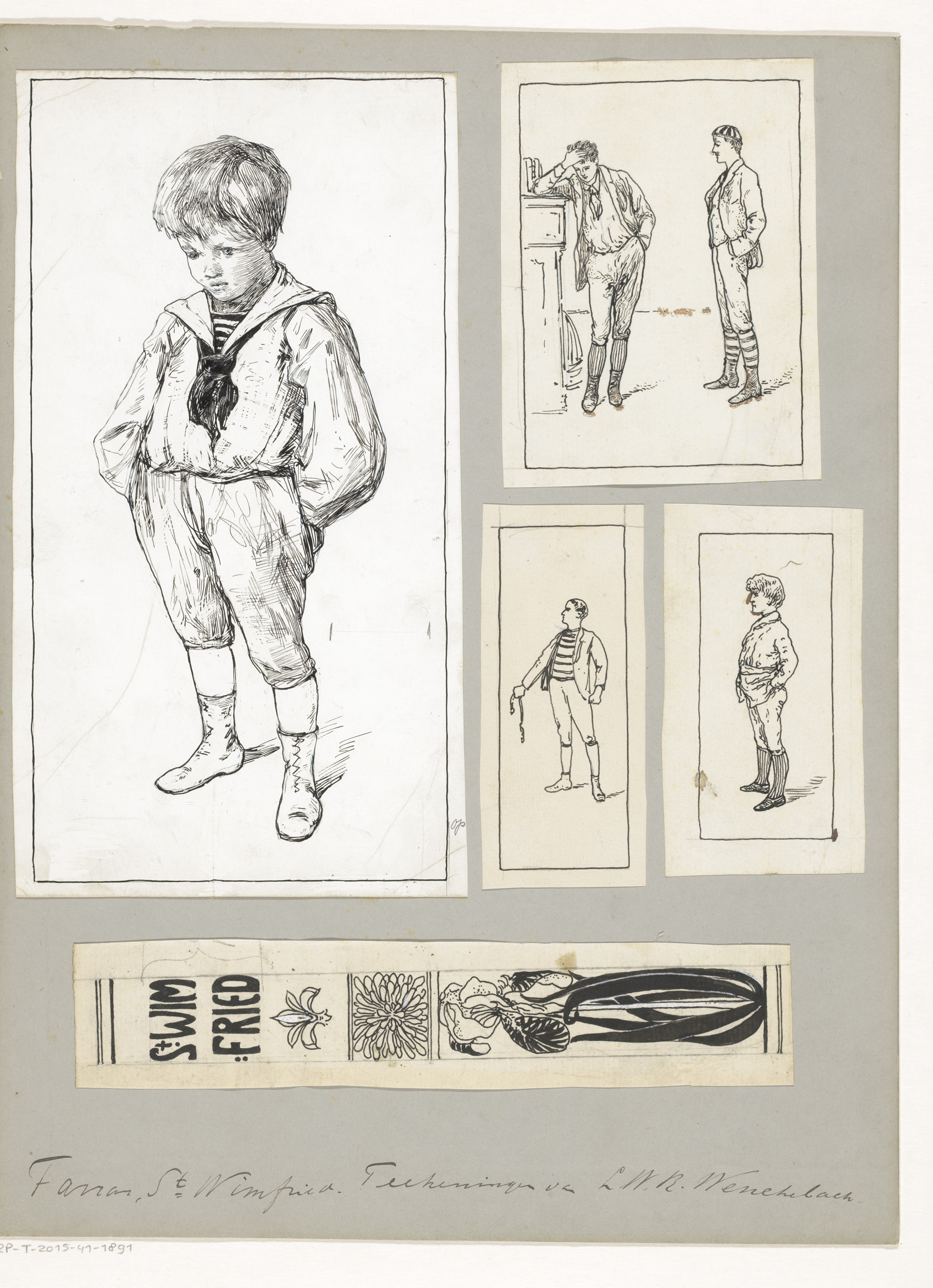 Ontwerpen voor een boekrug en illustraties voor: F.W...