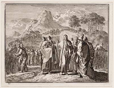 De Farizeën wijzen Jezus op de discipelen die met on...
