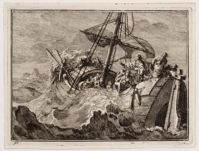 Jezus staat in een schip en beveelt de zee rustig te...