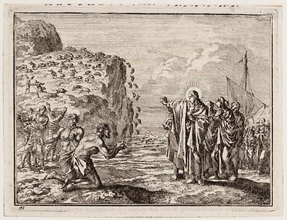 Jezus geneest bezetenen die voor hem op de grond rollen