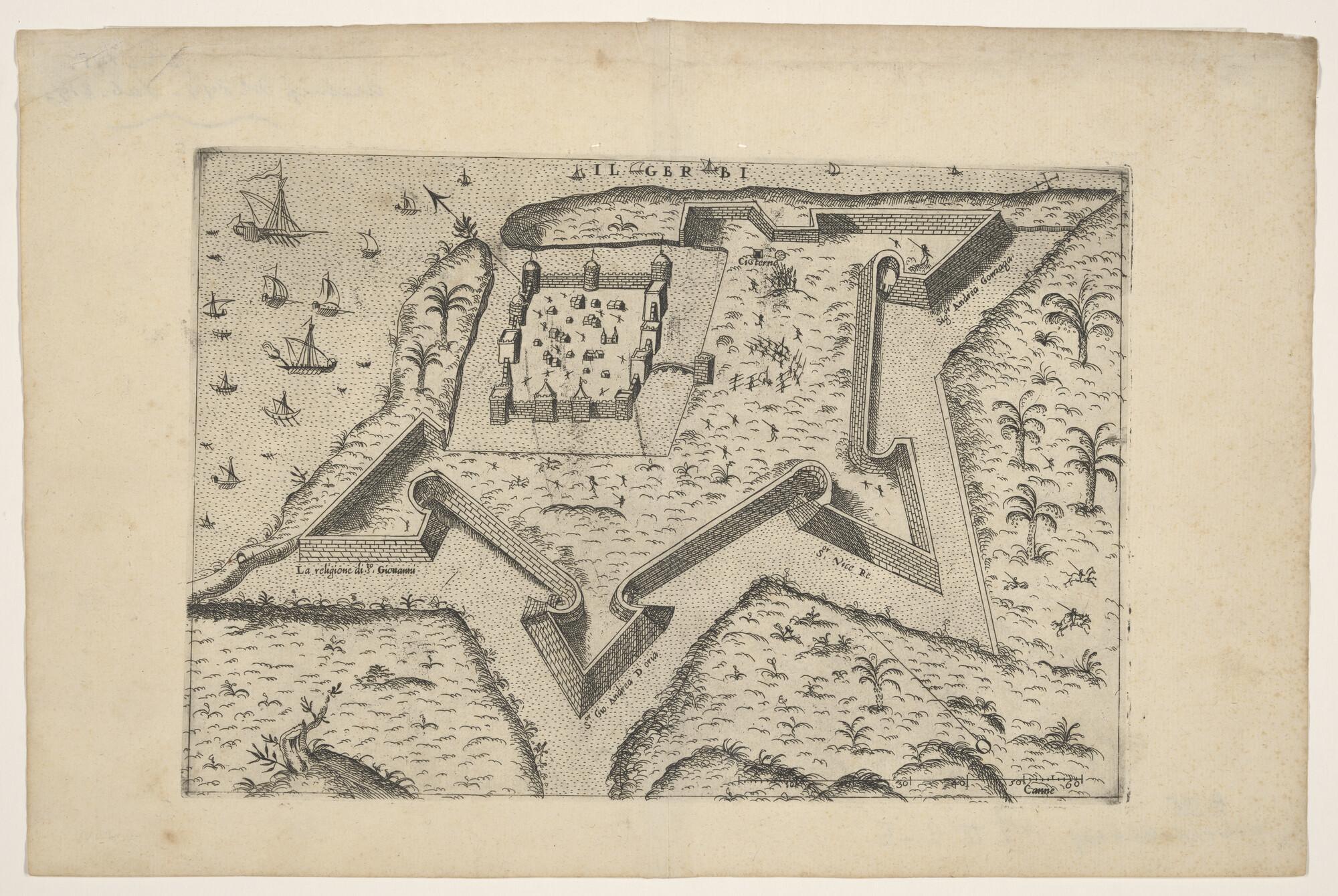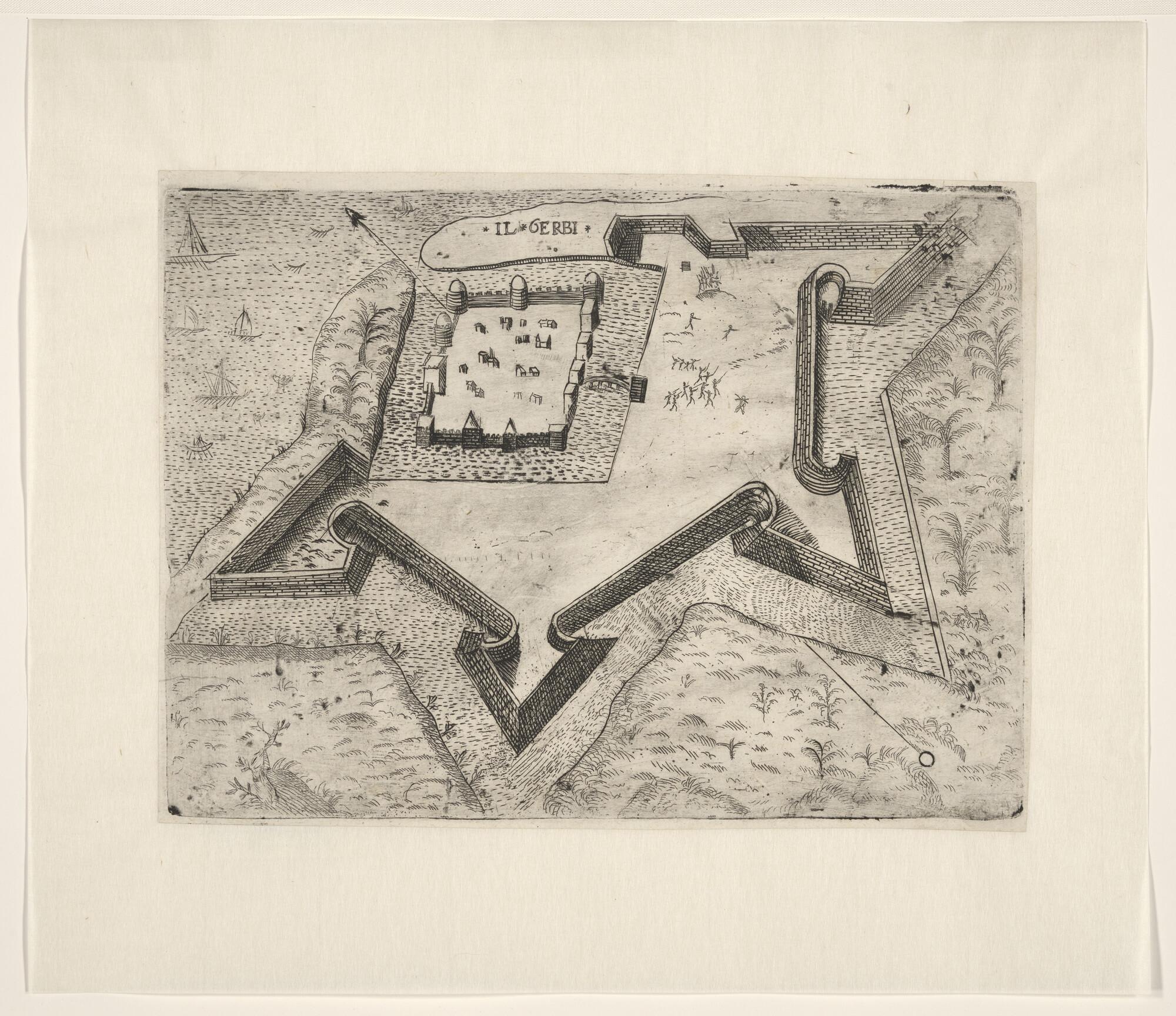 Anonieme kaart van het fort op het schiereiland Gerbi