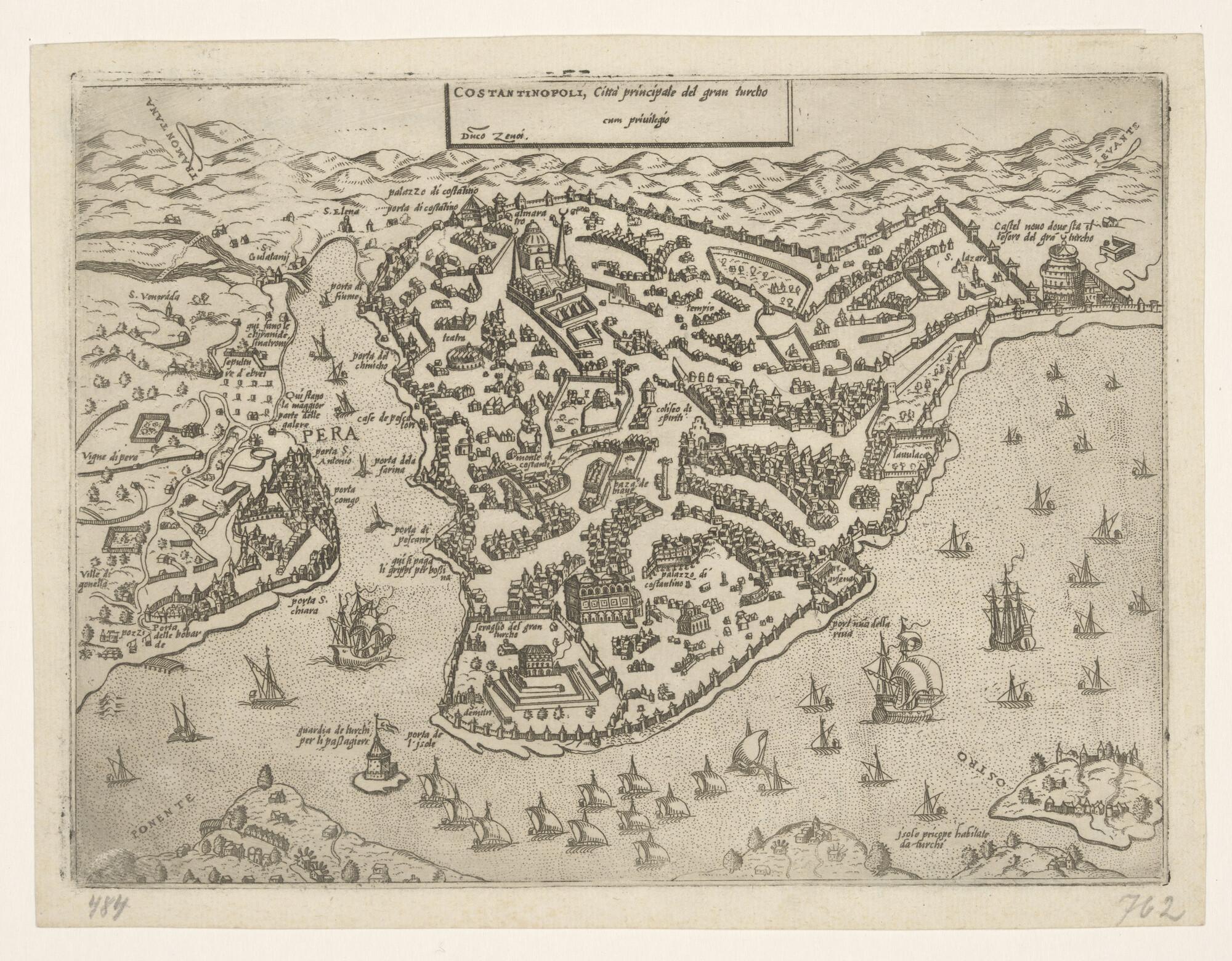 Kaart van de stad Constantinopel in circa 1560 door ...