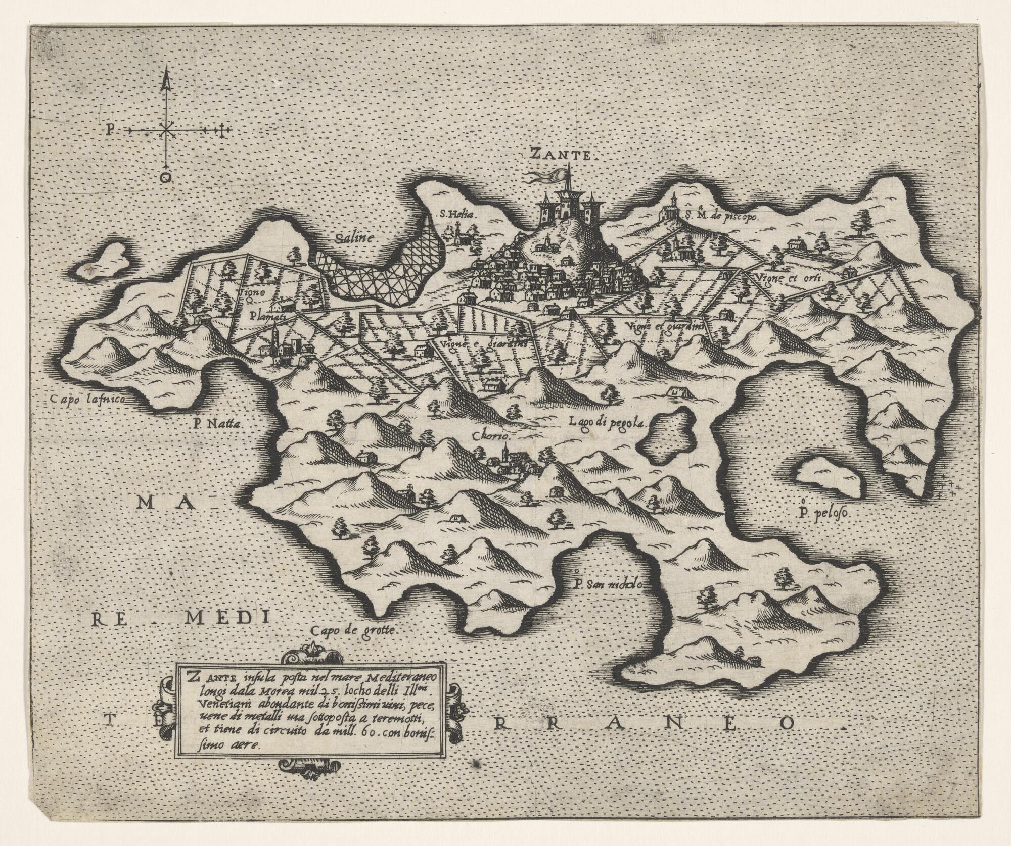 Anonieme kaart van het Griekse eiland Zante, circa 1...