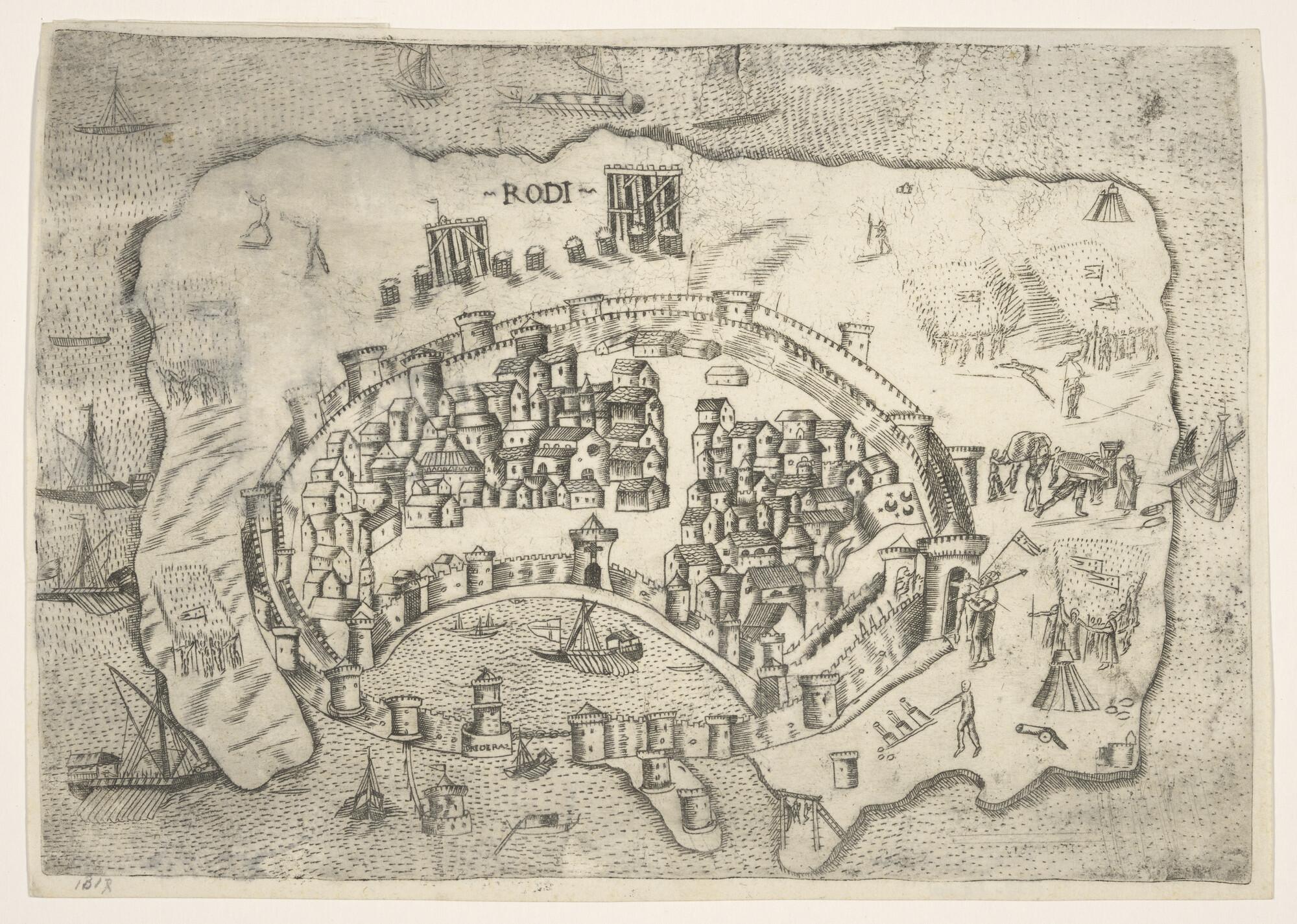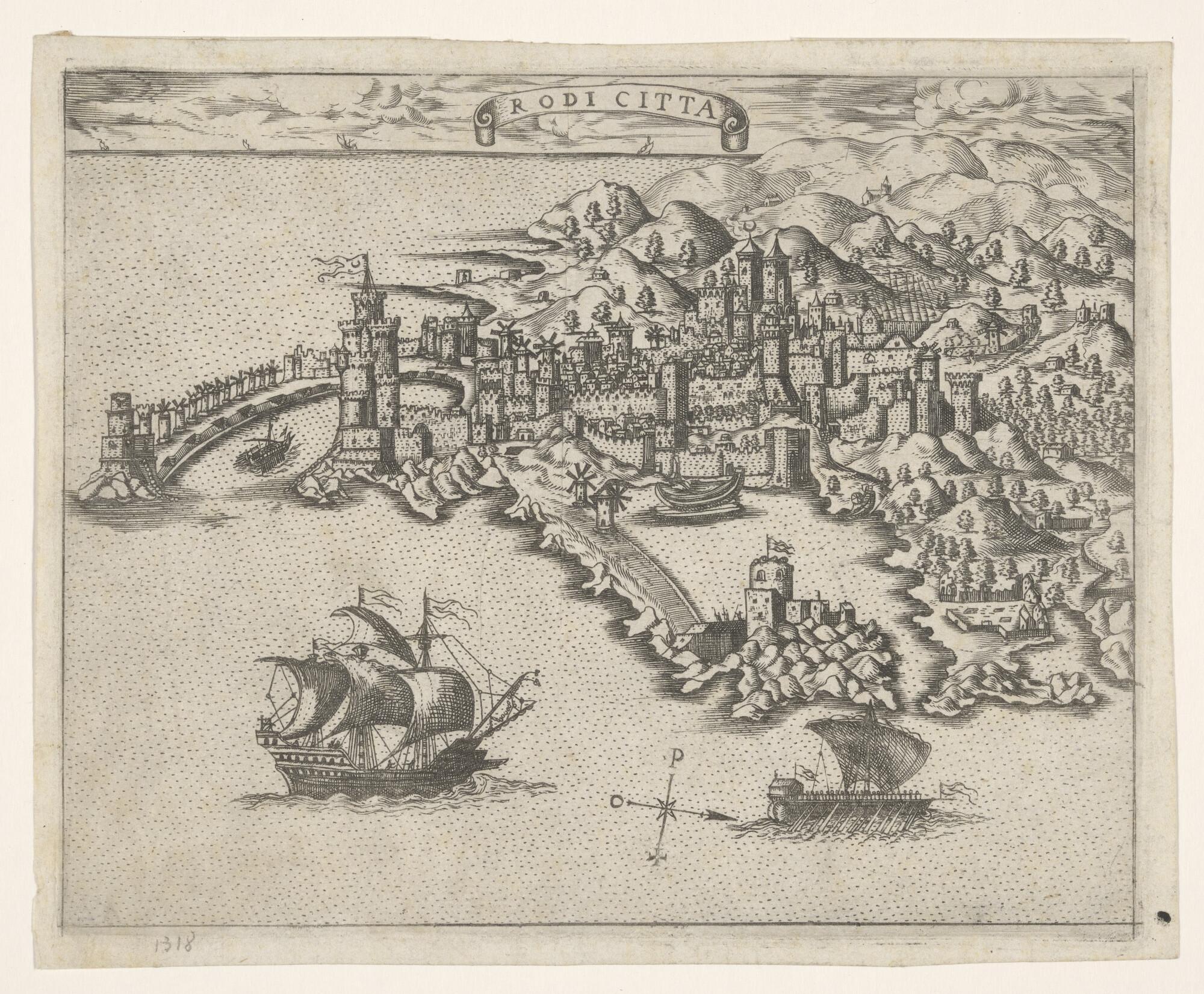 Anonieme kaart van het stad Rhodos op het gelijknami...