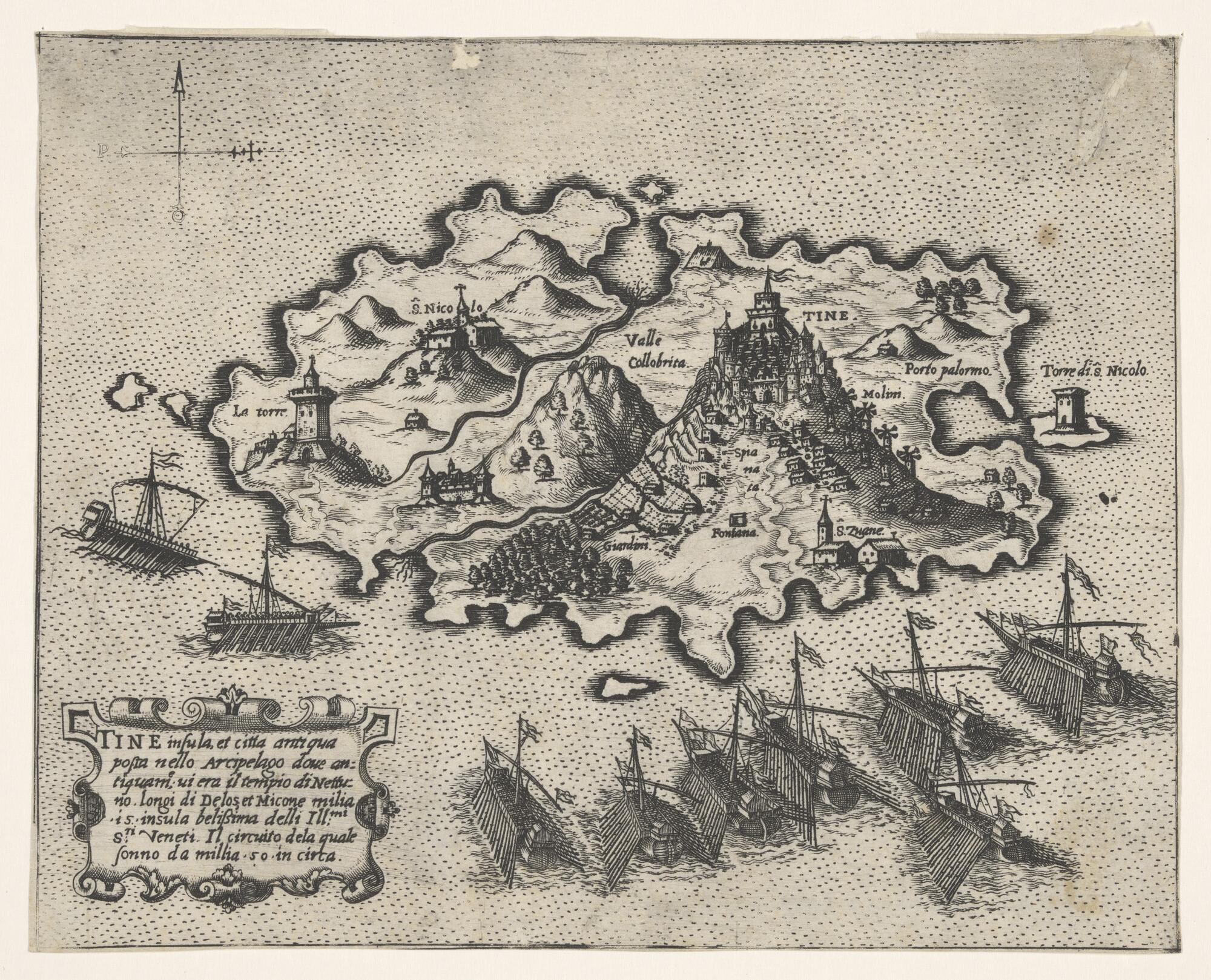 Anonieme kaart van het Griekse eiland Tine, circa 1550